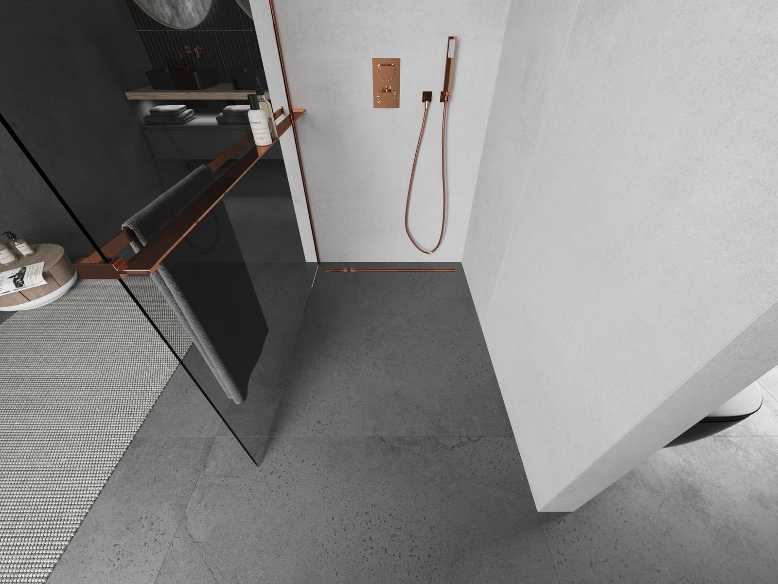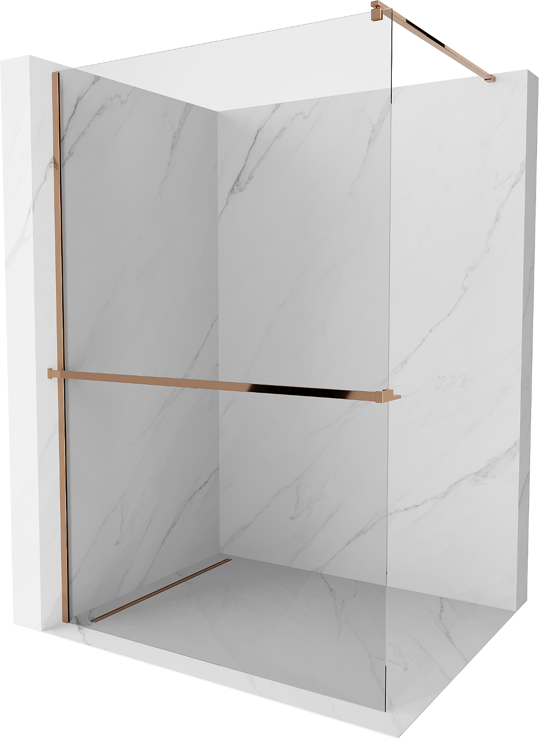 Mexen Kioto+ душ кабина с рафт Walk-in 125 x 200 см, прозрачна, розово злато - 800-125-121-60-00