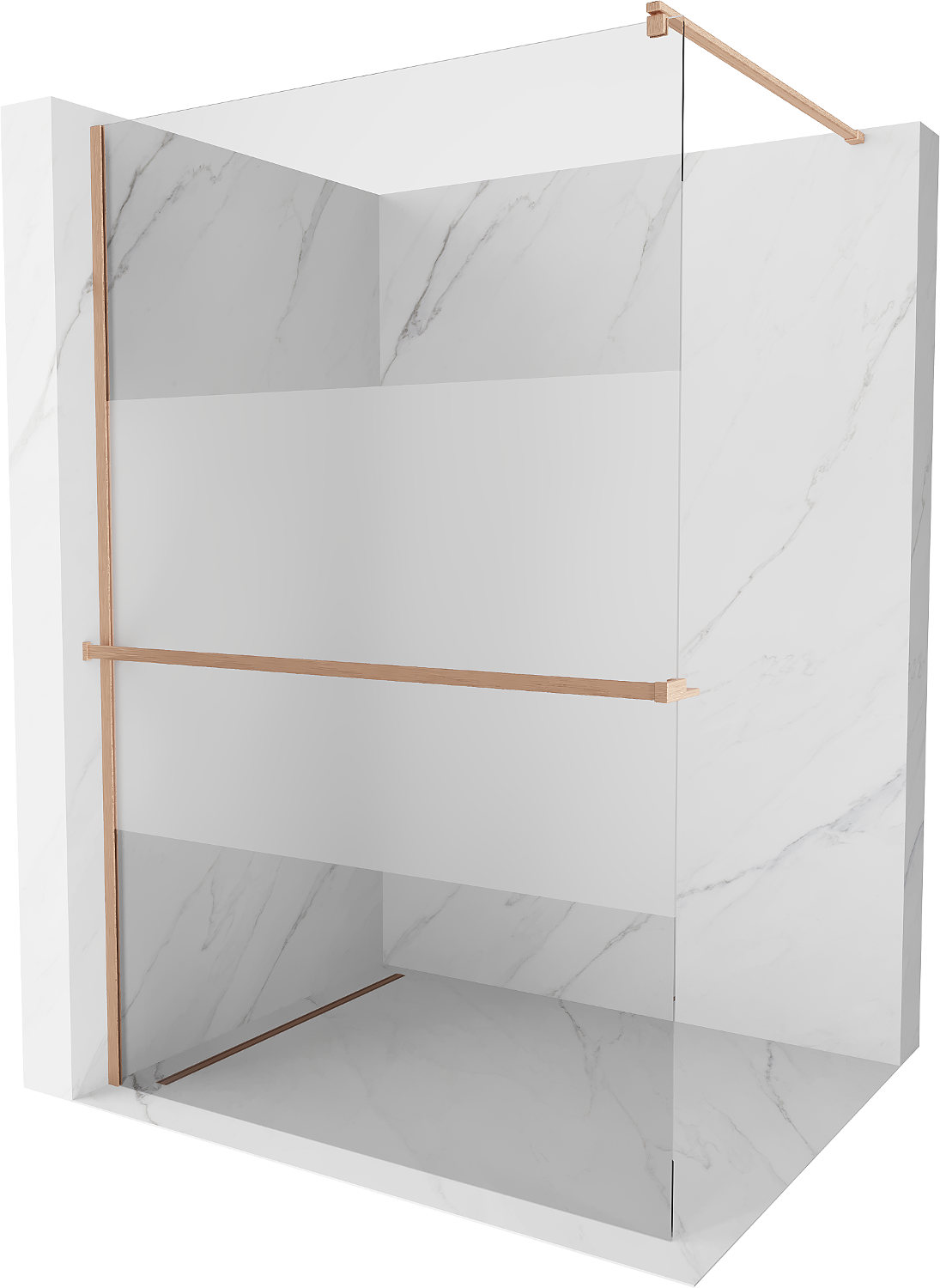 Mexen Kioto+ душ екран със стойка Walk-in 140 x 200 cm, прозрачно/матово, четкана мед - 800-140-121-65-35