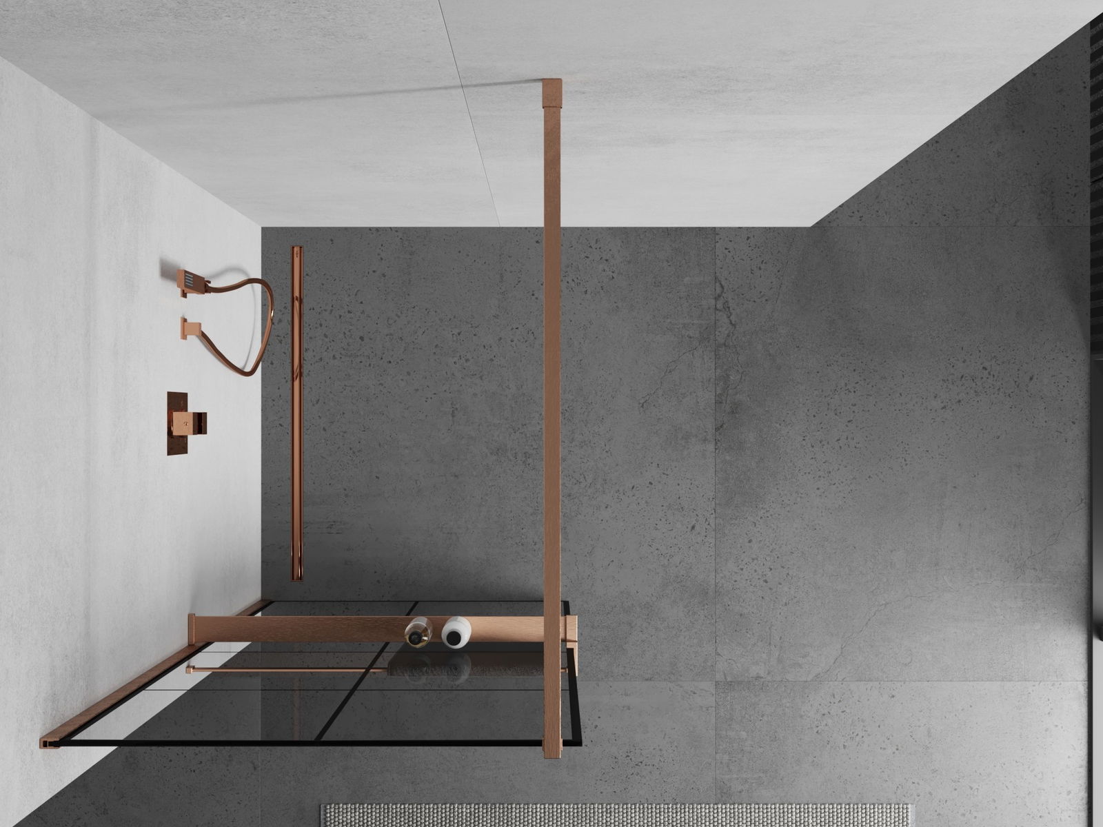 Mexen Kioto+ преграда за душ с рафт Walk-in 90 x 200 см, черни решетки, четкана мед - 800-090-121-65-77