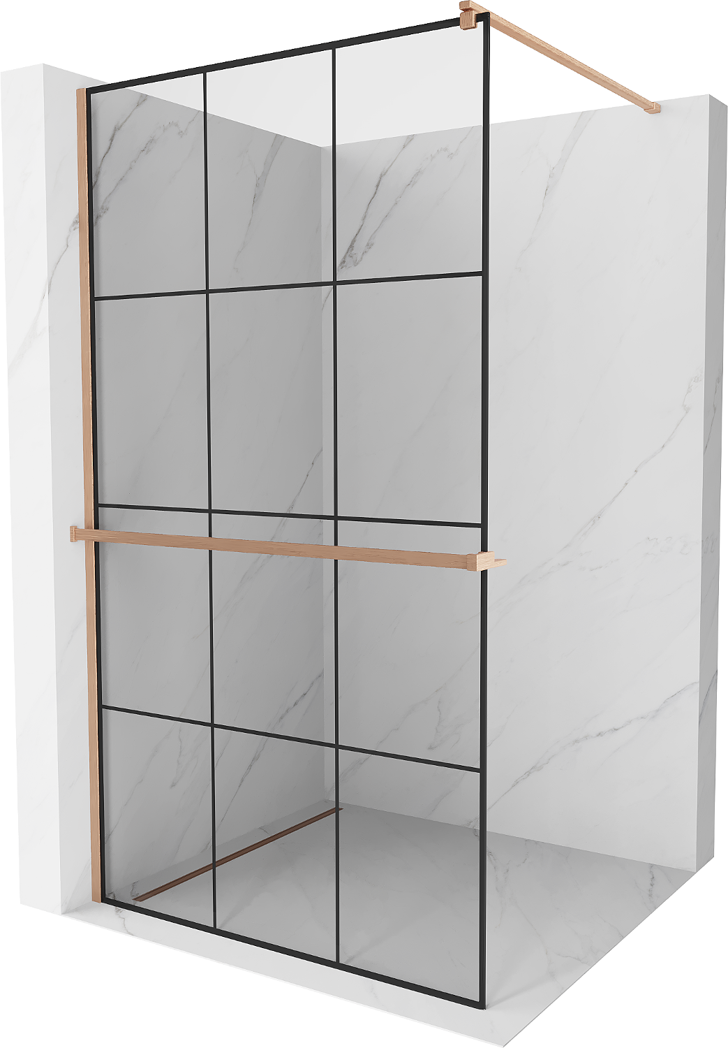Mexen Kioto+ душ преграда с рафт Walk-in 120 x 200 cm, черна решетка, четкана мед - 800-120-121-65-77