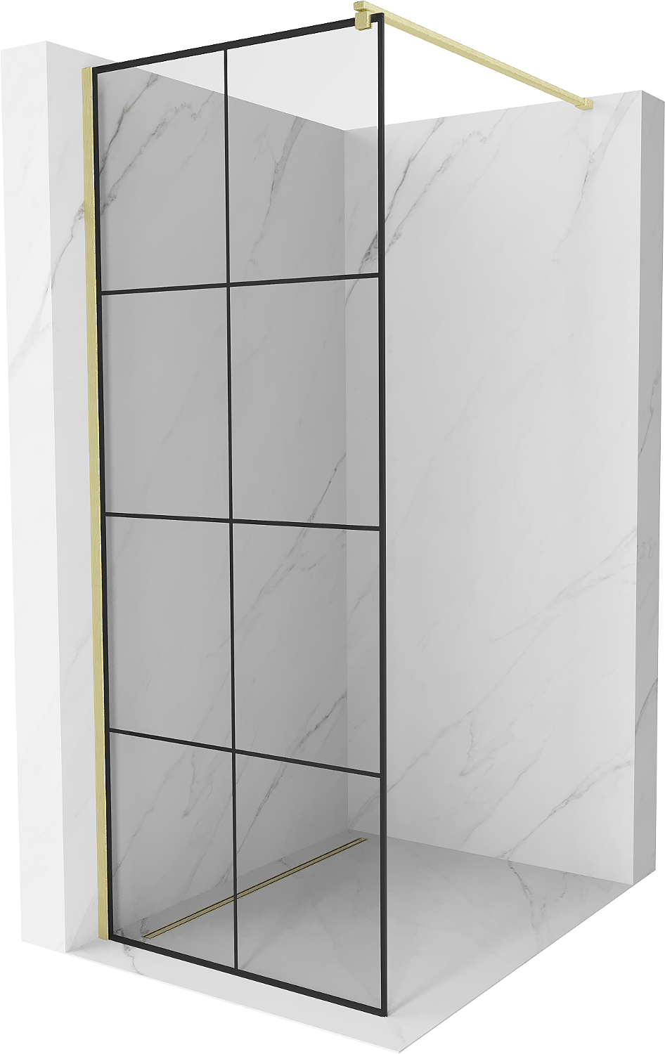 Mexen Kioto душ стена Walk-in 80 x 200 cm, черна решетка 8 mm, златна четкована - 800-080-101-55-77