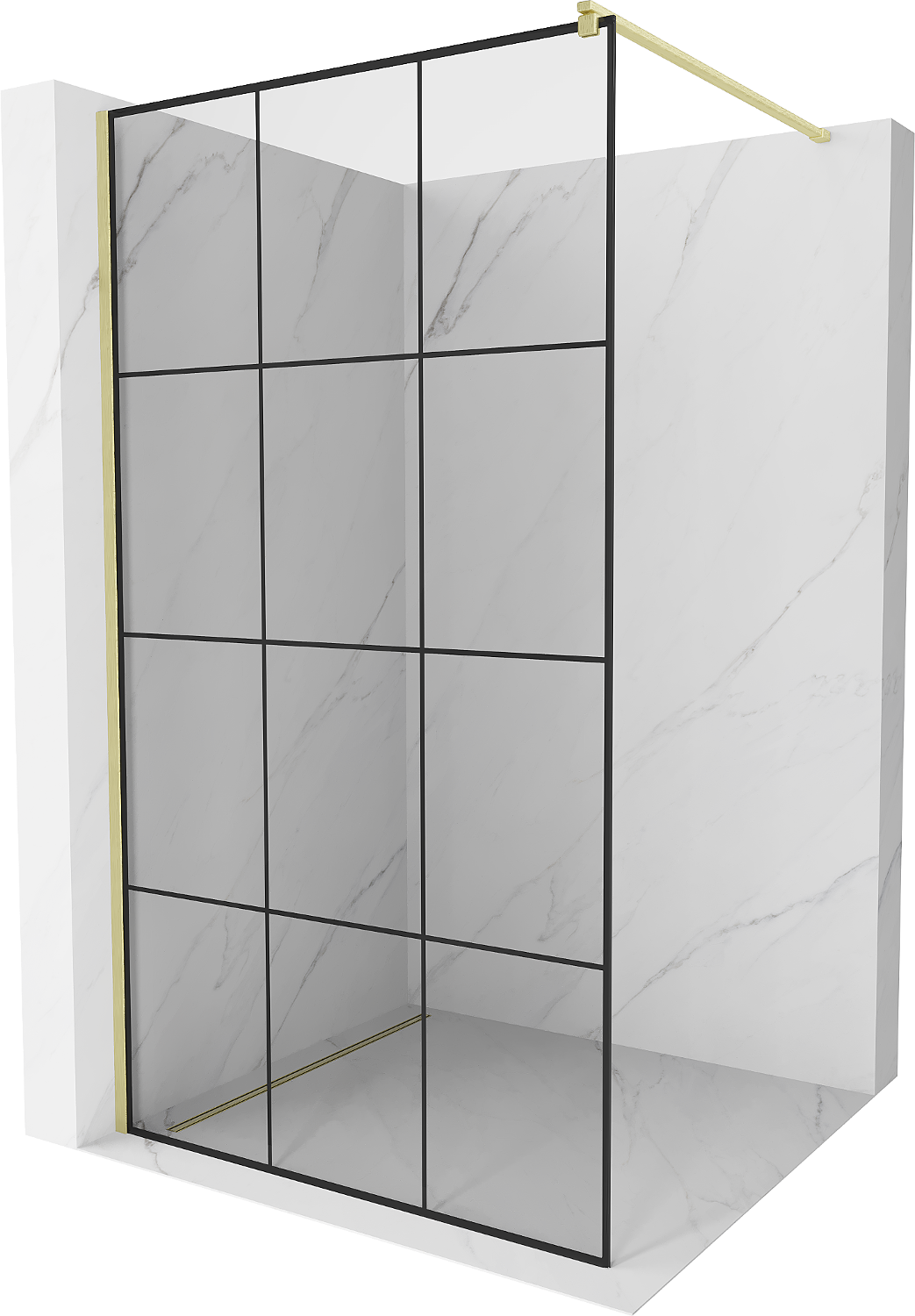 Mexen Kioto преградна стена за душ Walk-in 110 x 200 см, черна решетка 8 мм, злато четкано - 800-110-101-55-77