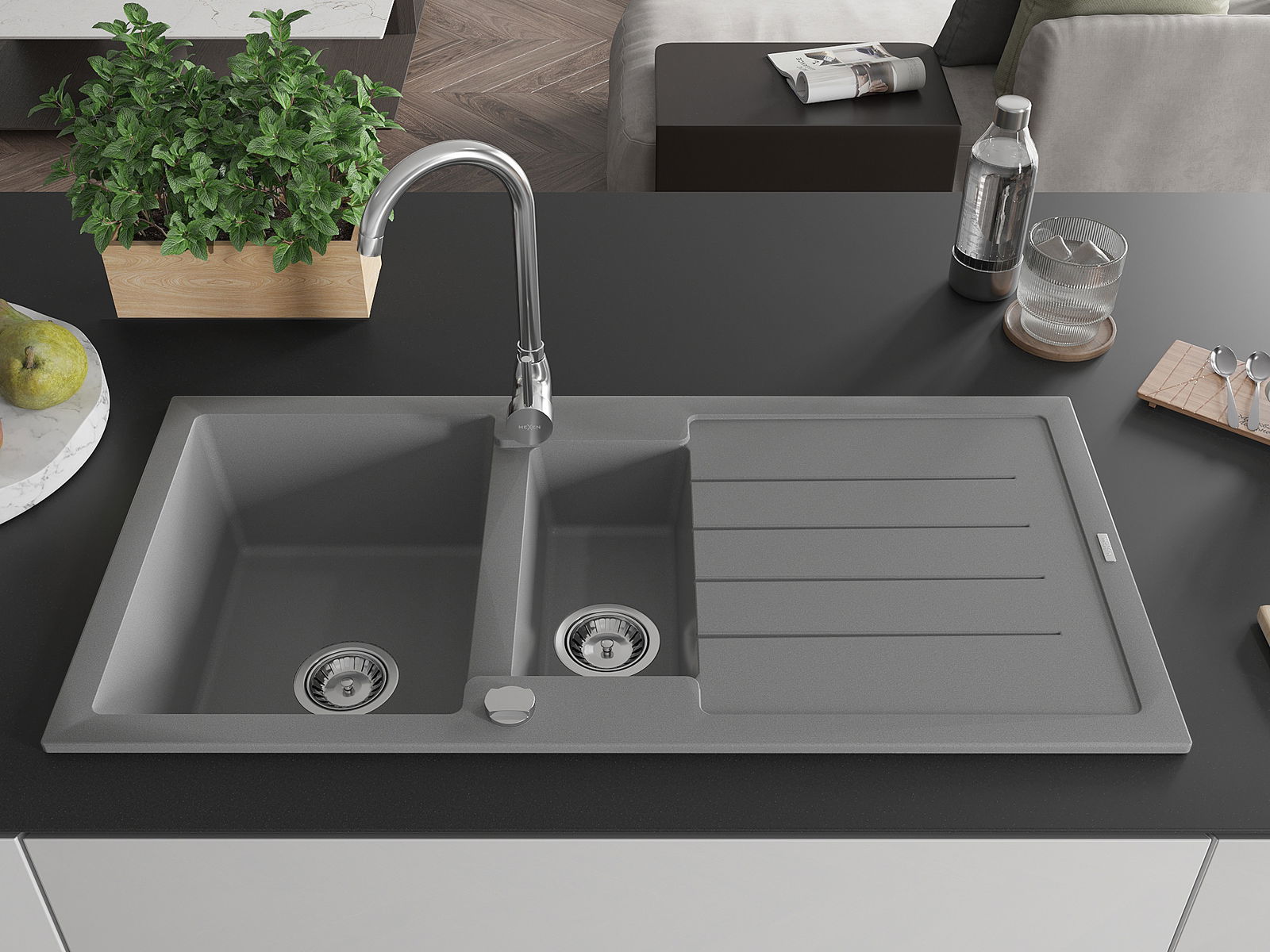 Повърхността на мивката е устойчива на петна и обезцветяване, благодарение на които е лесно да се почиства и запазва цвета си за дълго време. Естетически и практически допълващи всяка кухня.