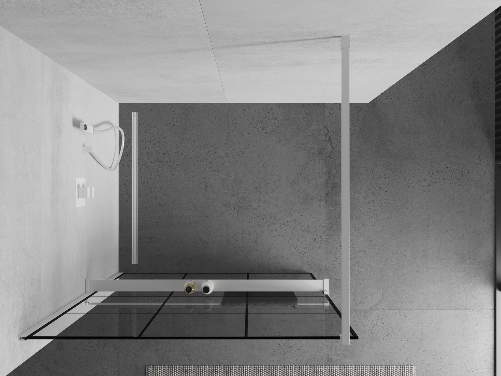 Mexen Kioto+ душ стена с рафт Walk-in 100 x 200 см, черна решетка, бяла - 800-100-121-20-77
