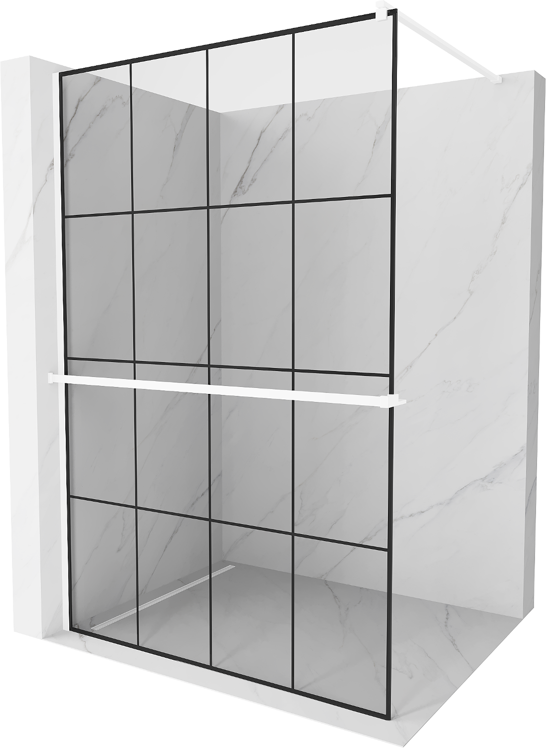 Mexen Kioto+ душ стена със стелаж Walk-in 130 x 200 см, черна решетка, бяла - 800-130-121-20-77
