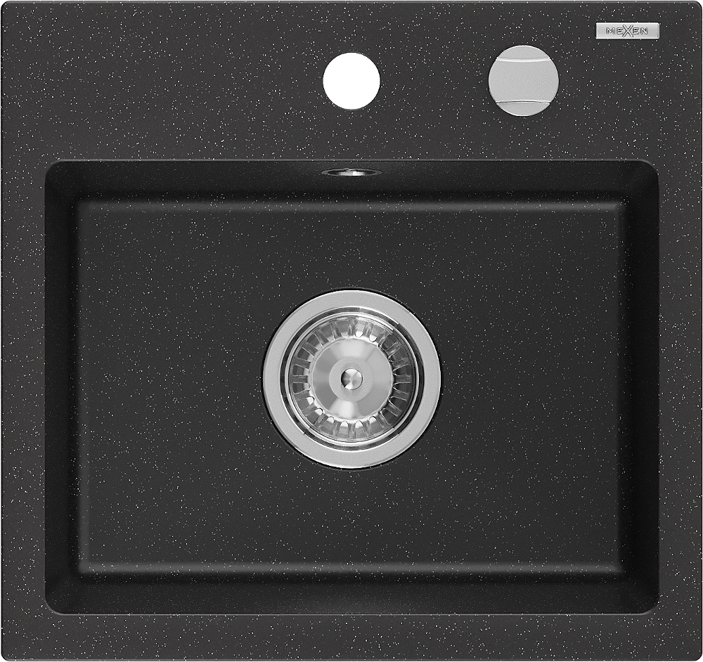Mexen Milo гранитна мивка с 1 отделение 435 x 410 mm, черен/сребрист металик, сифон хром - 6505441000-73