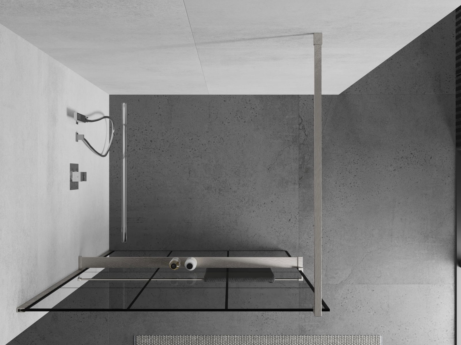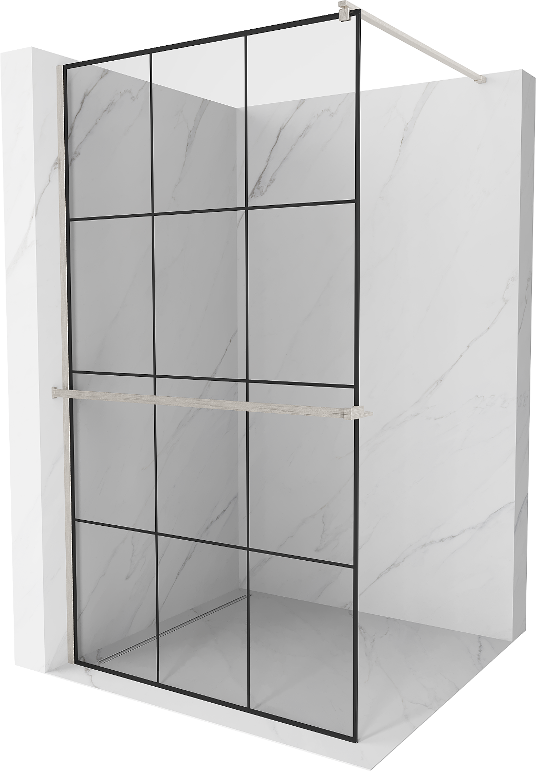 Mexen Kioto+ Душ кабина със стена и рафт Walk-in 120 x 200 см, черна решетка, четка никел - 800-120-121-97-77