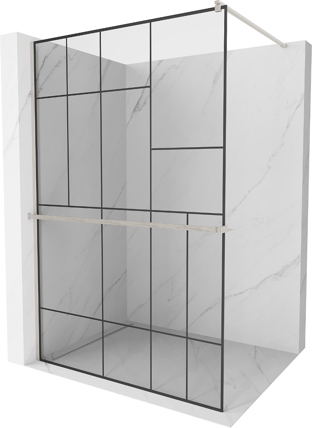 Mexen Kioto+ душ преграда с рафт Walk-in 130 x 200 cm, черен десен, четкан никел - 800-130-121-97-78