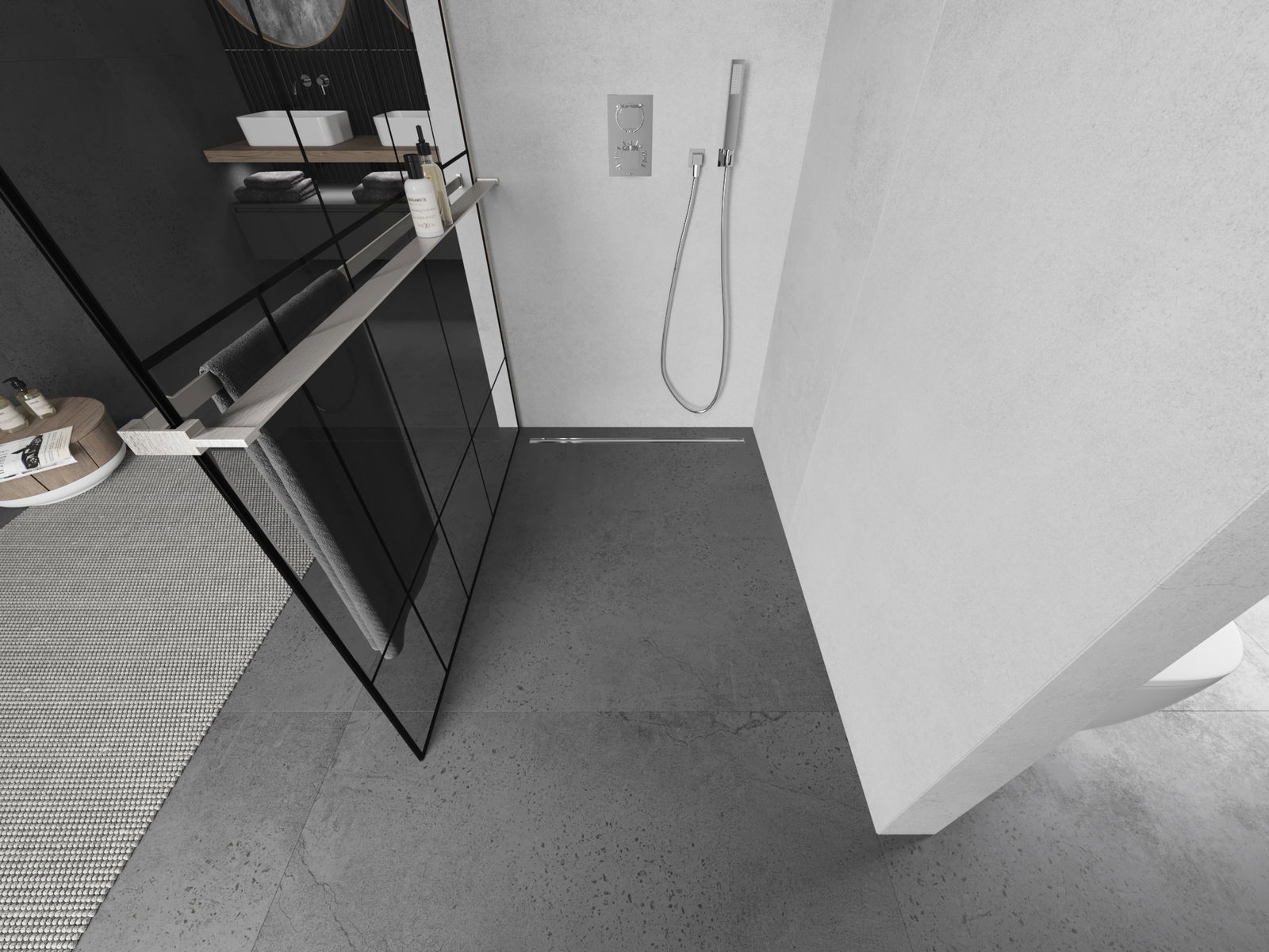 Държачът за кърпа в стената на душ кабината е много практично и удобно решение. По време на къпане кърпата винаги е подръка, улеснявайки свободното използване. Това също е идеалното място за изсушаване на кърпата.