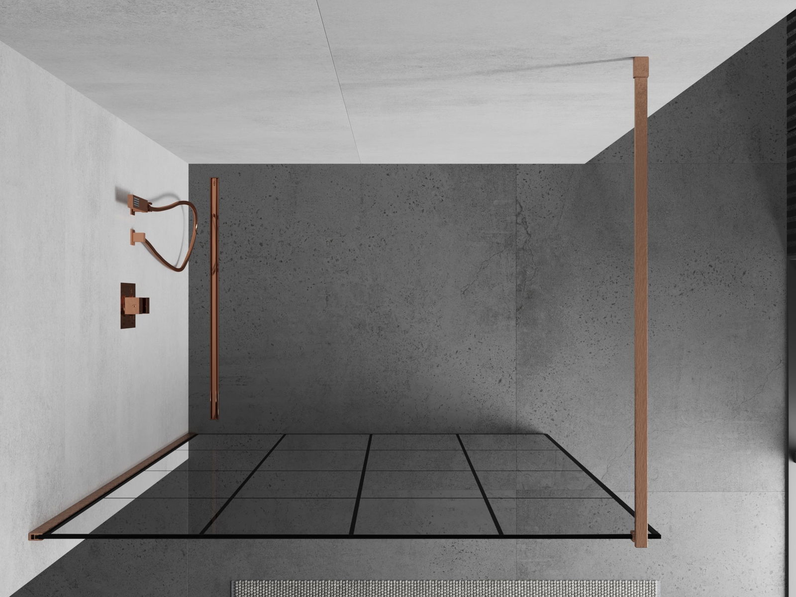 Mexen Kioto душ кабина Walk-in 150 x 200 см, черна решетка 8 мм, четкана мед - 800-150-101-65-77