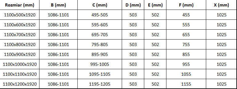 Размер: 110x110 cm (врати 110 cm, стена 110 cm)