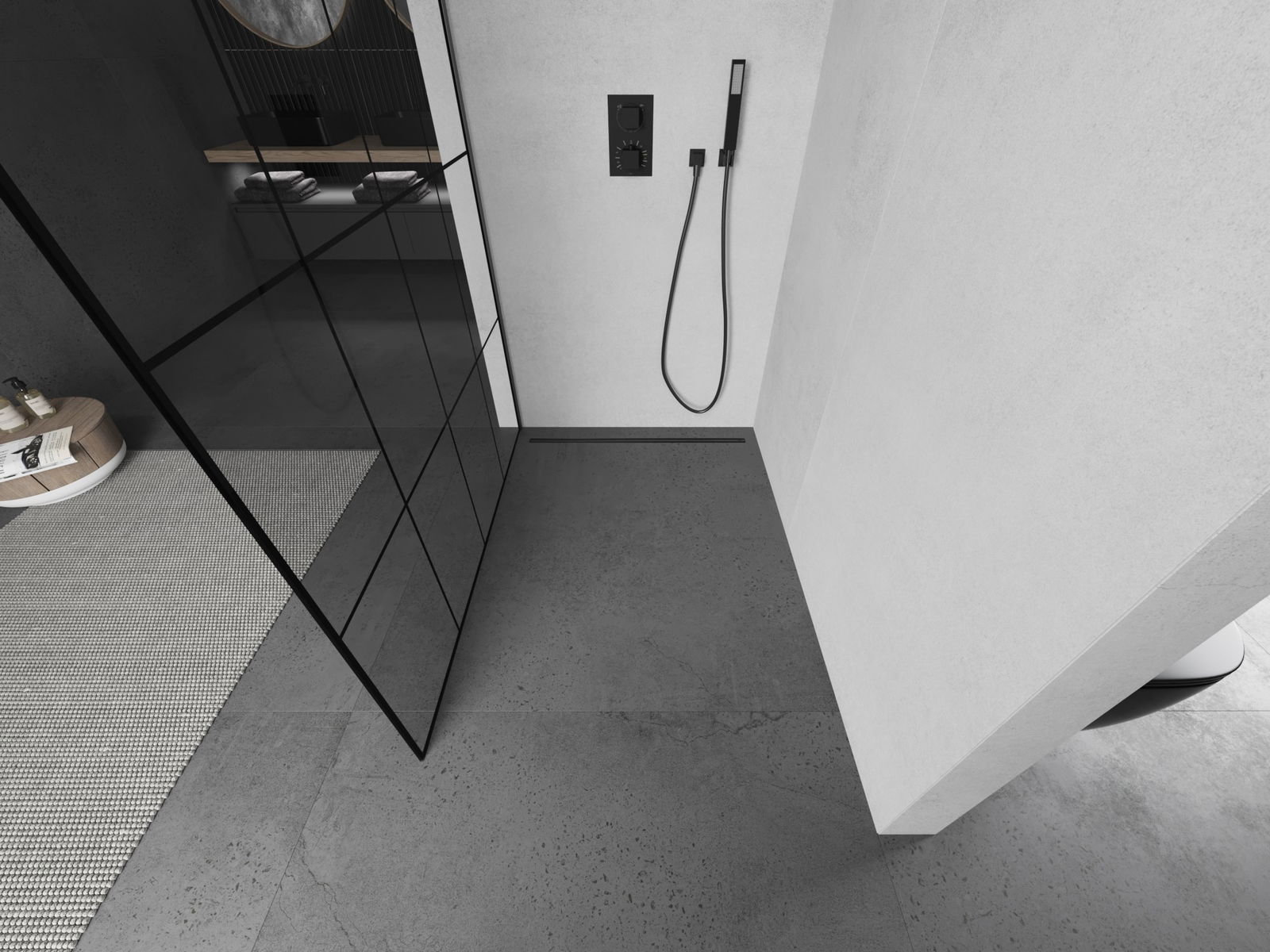 Mexen Kioto стъклена стена за душ Walk-in 140 x 200 см, черна решетка 8 мм, канон метал - 800-140-101-95-77