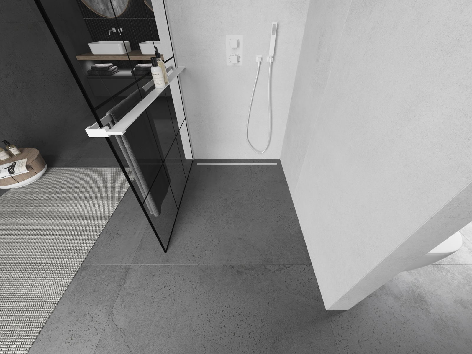 Държачът за кърпа в стената на душ кабината е много практично и удобно решение. По време на къпане кърпата винаги е подръка, улеснявайки свободното използване. Това също е идеалното място за изсушаване на кърпата.