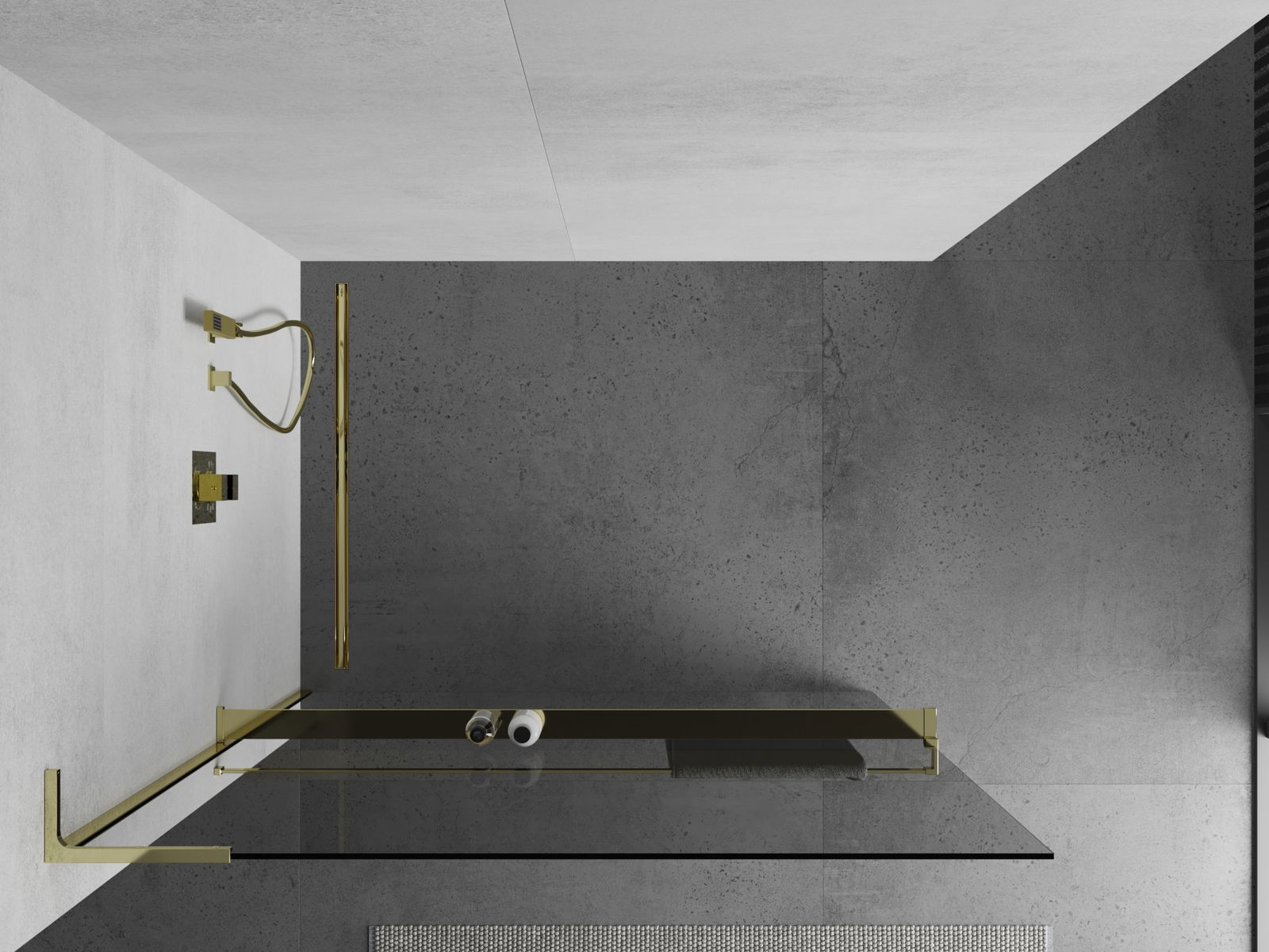 Mexen Kioto+ L душ преграда с рафт Walk-in 60 x 200 cm, прозрачна, златна - 800-060-123-50-00