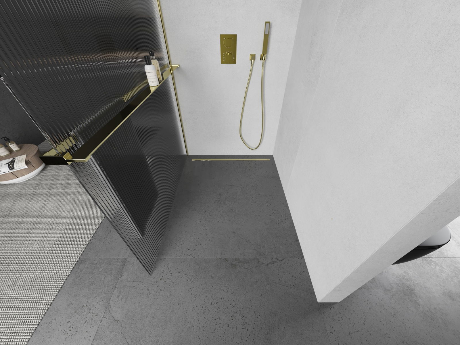 Mexen Kioto+ L душ стена с рафт Walk-in 80 х 200 см, райета, златна - 800-080-123-50-09