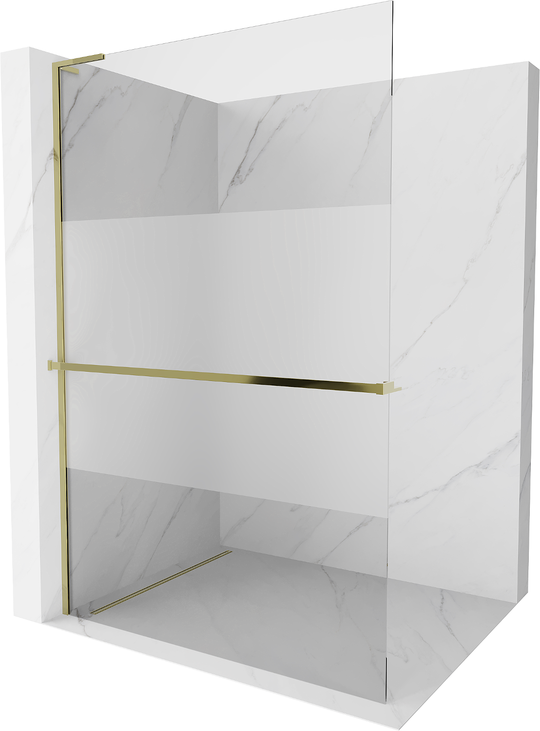 Mexen Kioto+ L душ панел с рафт Walk-in 100 x 200 см, прозрачен/матов, златен - 800-100-123-50-35