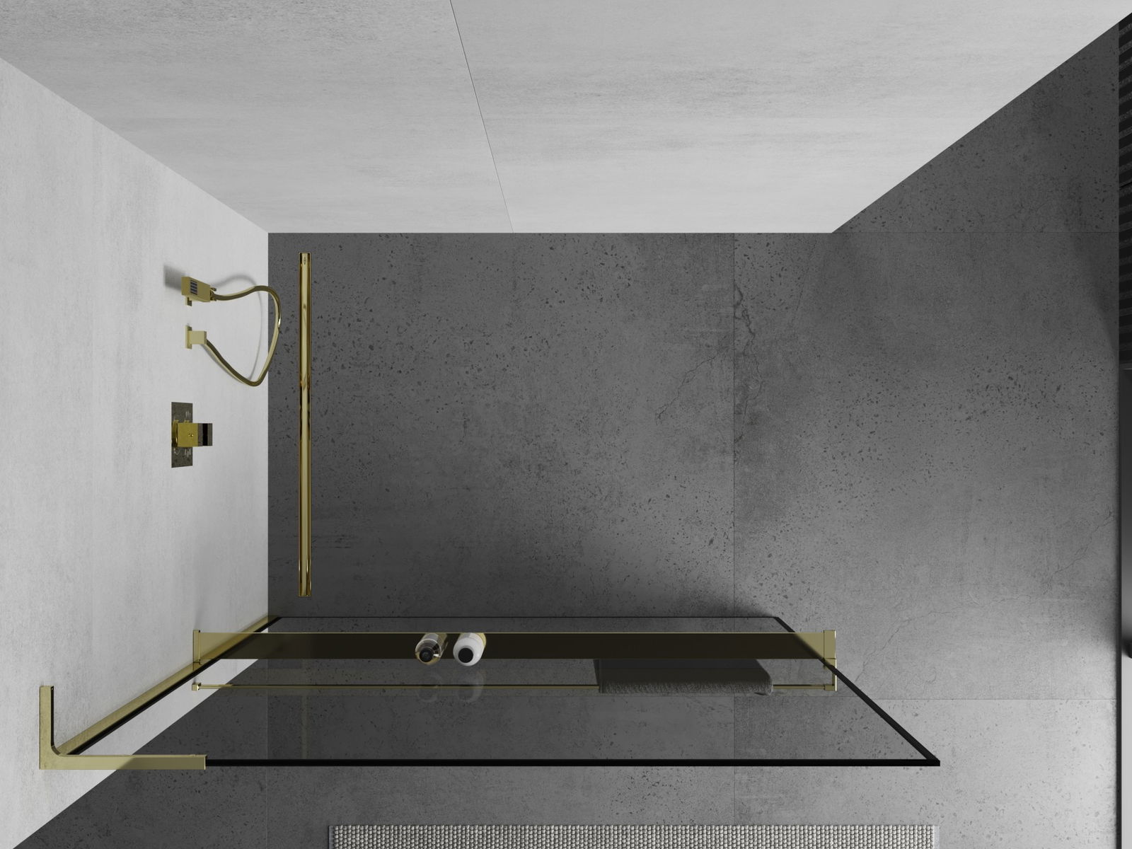 Mexen Kioto+ L душ-стена с рафт Walk-in 60 x 200 cm, черна рамка, златна - 800-060-123-50-70