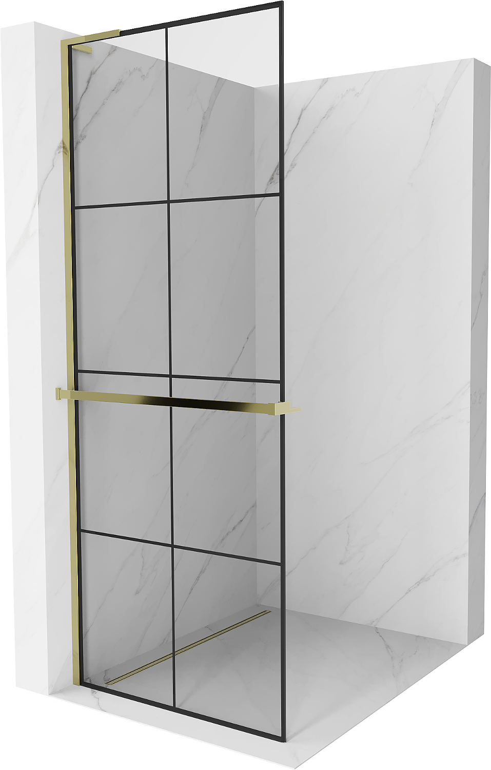 Mexen Kioto+ L душ преграда с рафт Walk-in 90 x 200 cm, черна решетка, златна - 800-090-123-50-77