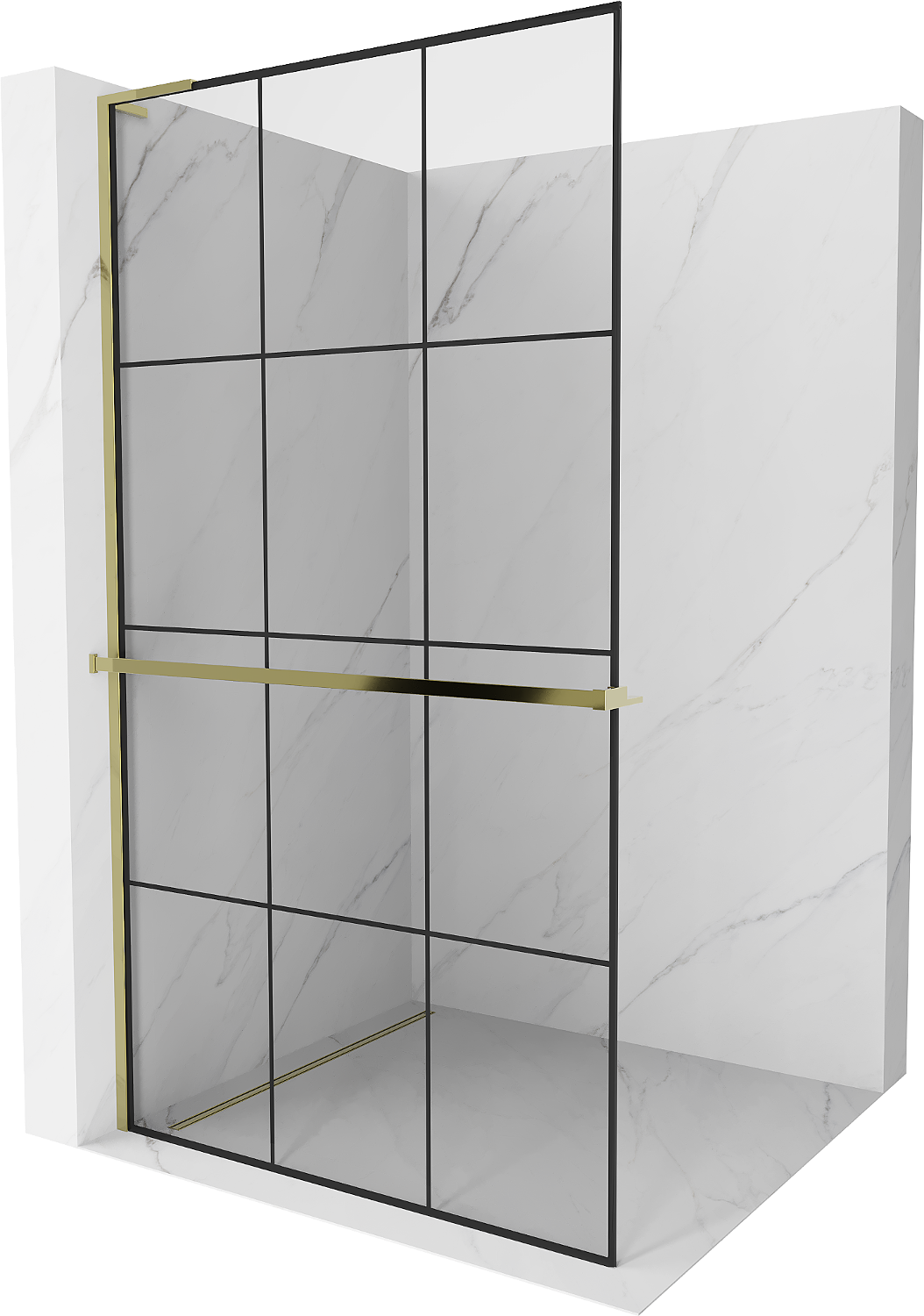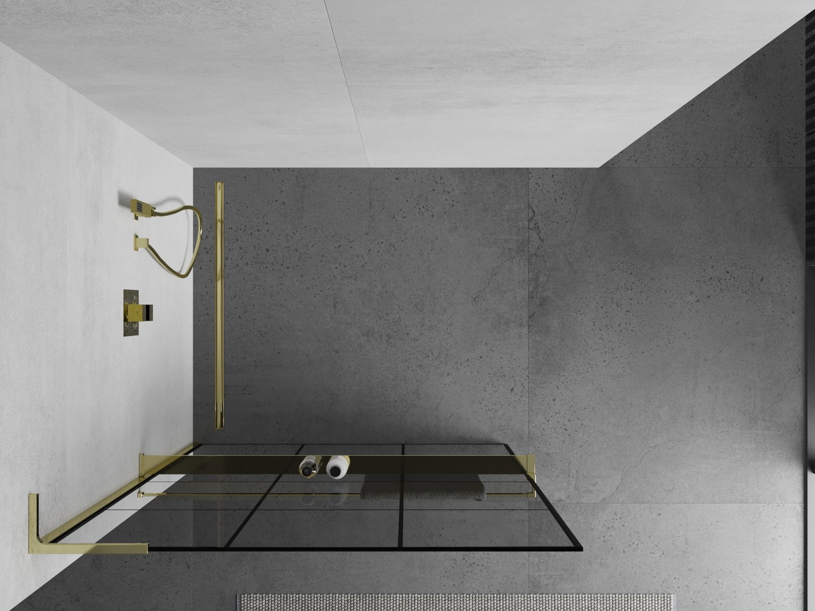 Mexen Kioto+ L душ-преграда с рафт Walk-in 120 x 200 cm, черна мрежа, златна - 800-120-123-50-77