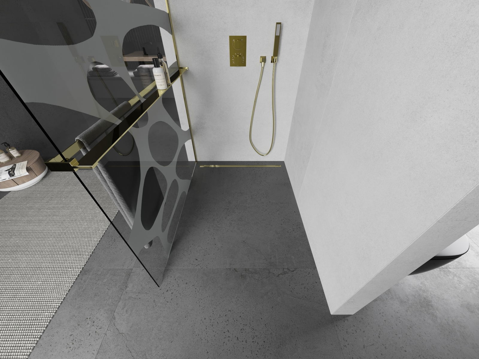 Mexen Kioto+ L душ параван със стъклена стена с рафт Walk-in 90 x 200 cm, бяла вълна, златен - 800-090-123-50-97