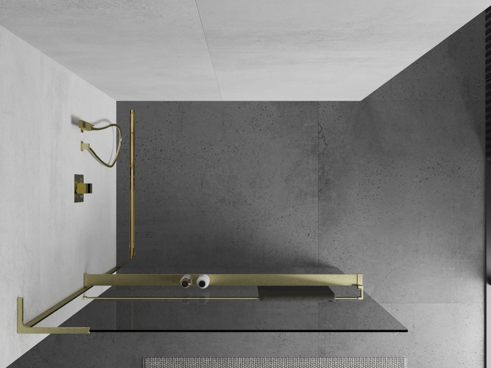Mexen Kioto+ L душ кабина със стена с рафт Walk-in 120 x 200 см, прозрачна, златиста четкана - 800-120-123-55-00
