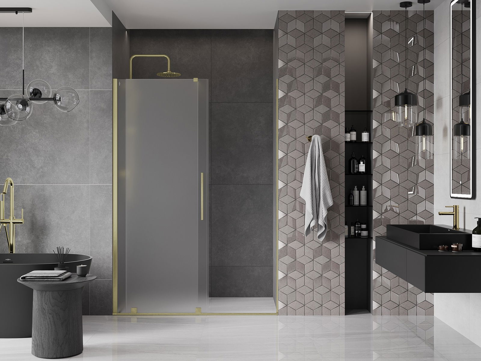 Практичната и удобна дръжка е изработена от неръждаема стомана. Модерната форма в комбинация с покритие, съчетано с цвета на профилите, придава на цялото съвременен и стилен вид, подчертавайки естетиката на всяка баня.