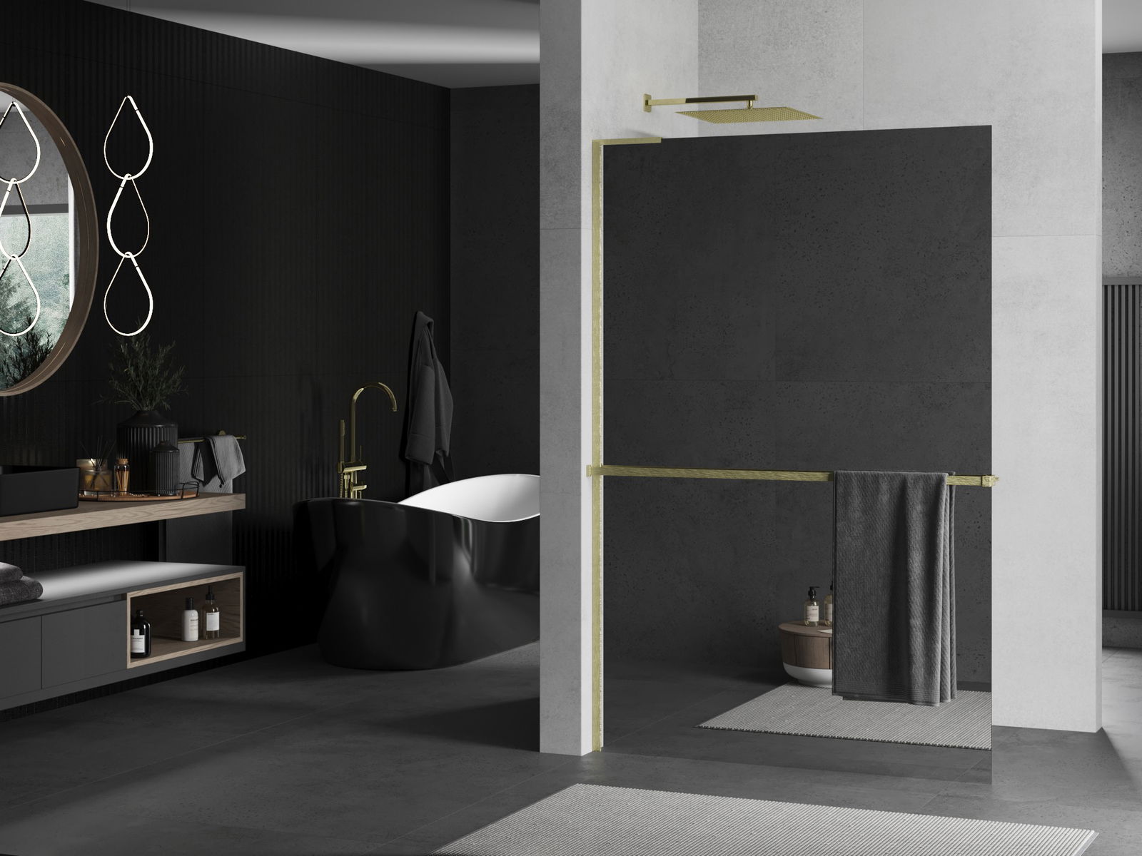 Mexen Kioto+ L душ преграда с рафт Walk-in 90 x 200 cm, огледало, златна матирана - 800-090-123-55-50
