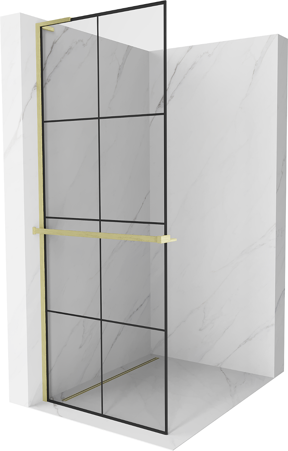 Mexen Kioto+ L душ преграда с рафт Walk-in 90 x 200 cm, черна решетка, злато четкано - 800-090-123-55-77