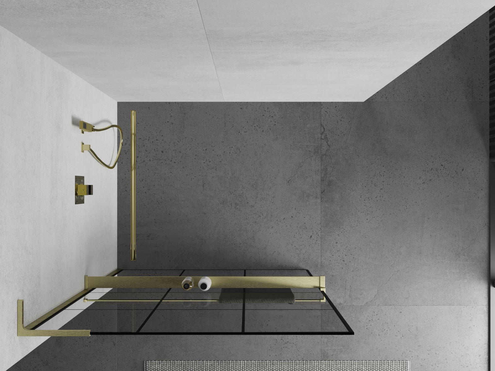 Mexen Kioto+ L Душ параван с рафт Walk-in 100 x 200 см, черна решетка, злато четкано - 800-100-123-55-77