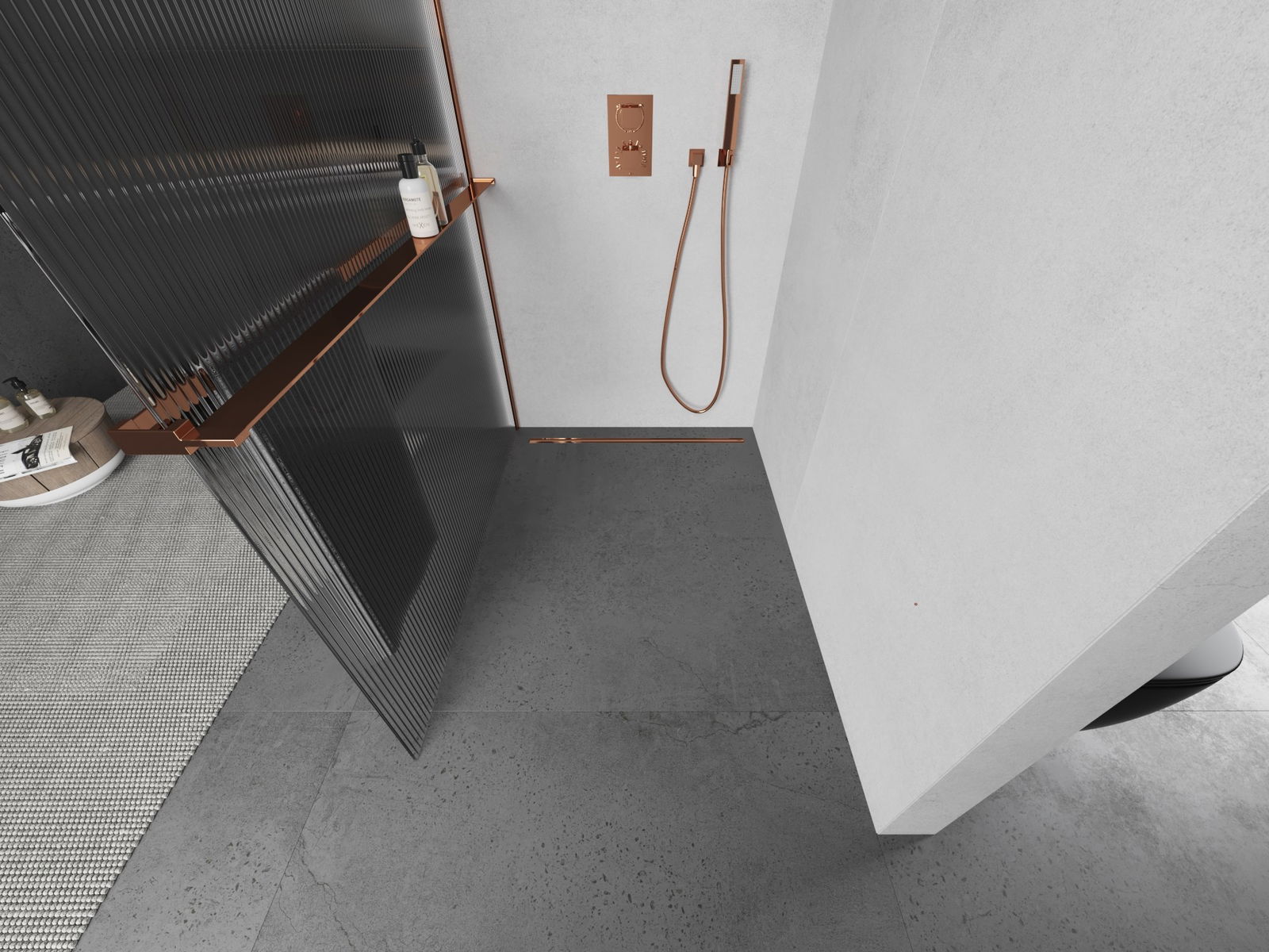Mexen Kioto+ L душ параван с рафт Walk-in 90 x 200 cm, пръстени, розово злато - 800-090-123-60-09