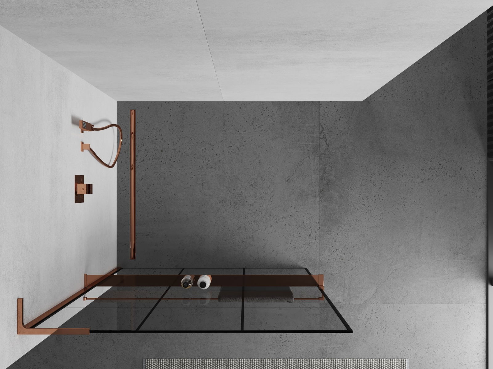 Mexen Kioto+ L стенно преграждане за душ с рафт Walk-in 110 x 200 cm, черна решетка, розово злато - 800-110-123-60-77
