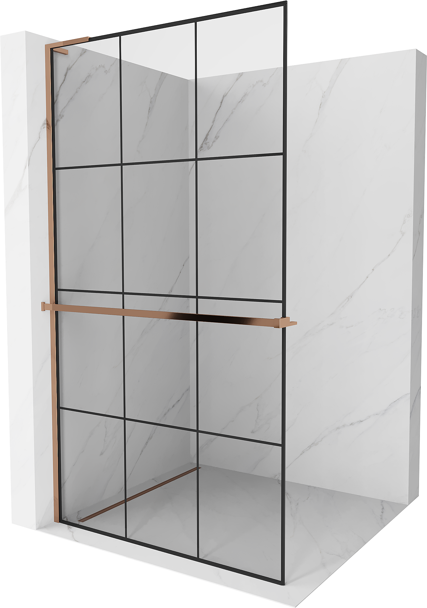Mexen Kioto+ L душ стена с рафт Walk-in 120 x 200 см, черна решетка, розово злато - 800-120-123-60-77