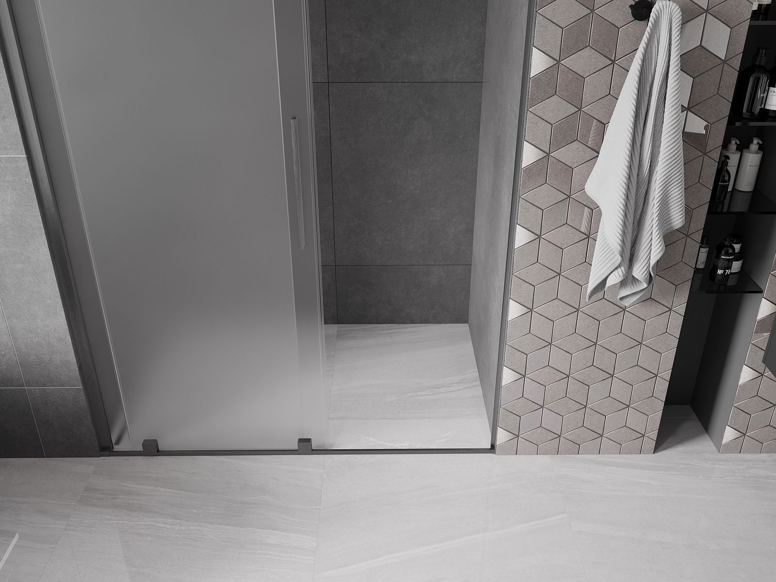 Практичната и удобна дръжка е изработена от неръждаема стомана. Модерната форма в комбинация с покритие, съчетано с цвета на профилите, придава на цялото съвременен и стилен вид, подчертавайки естетиката на всяка баня.