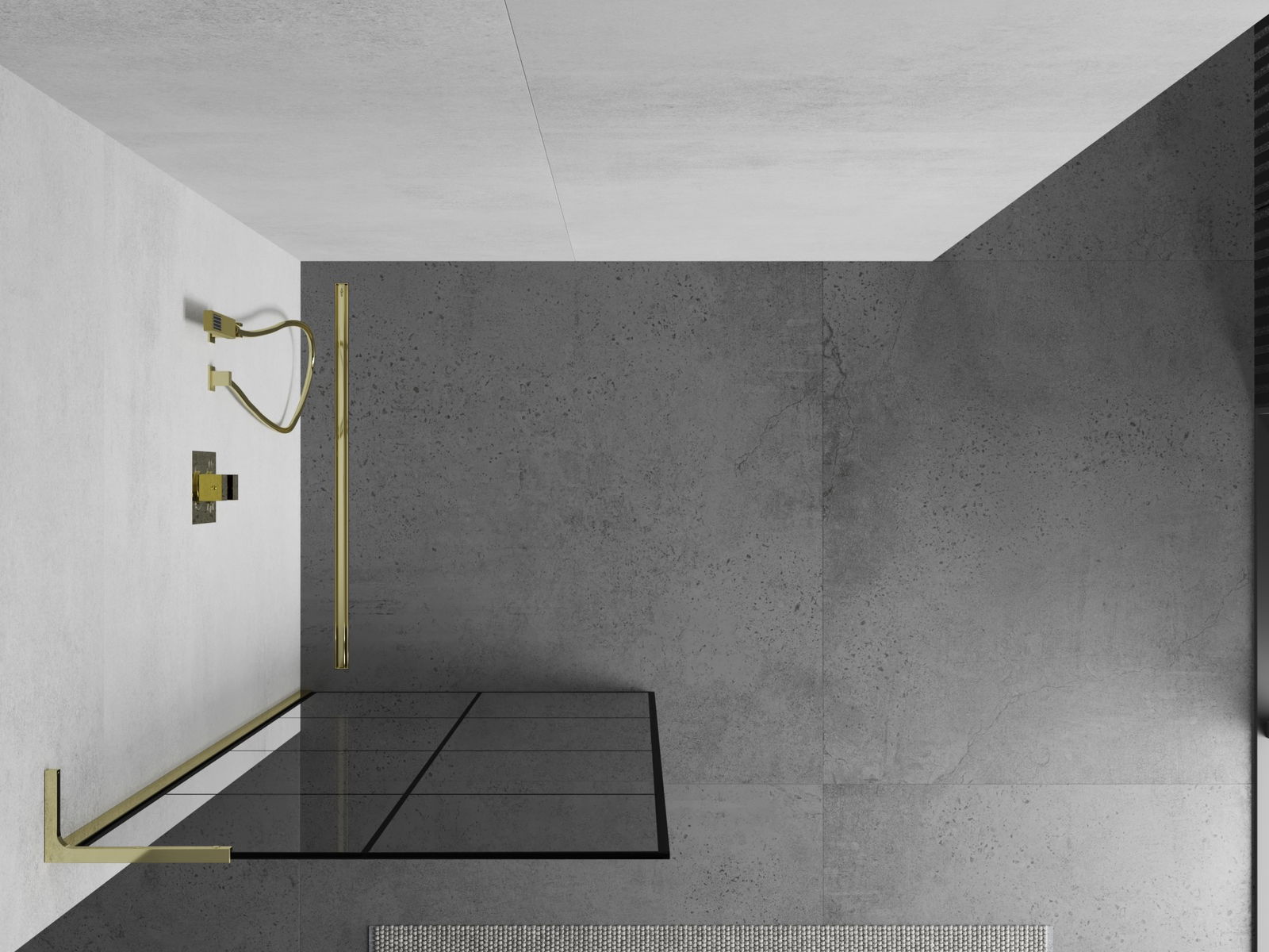 Mexen Kioto L стена за душ Walk-in 90 x 200 cm, черен мрежа, златен - 800-090-103-50-77
