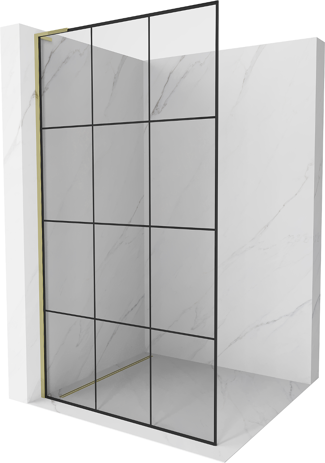 Mexen Kioto L стена за душ Walk-in 100 x 200 см, черна решетка, злато - 800-100-103-50-77