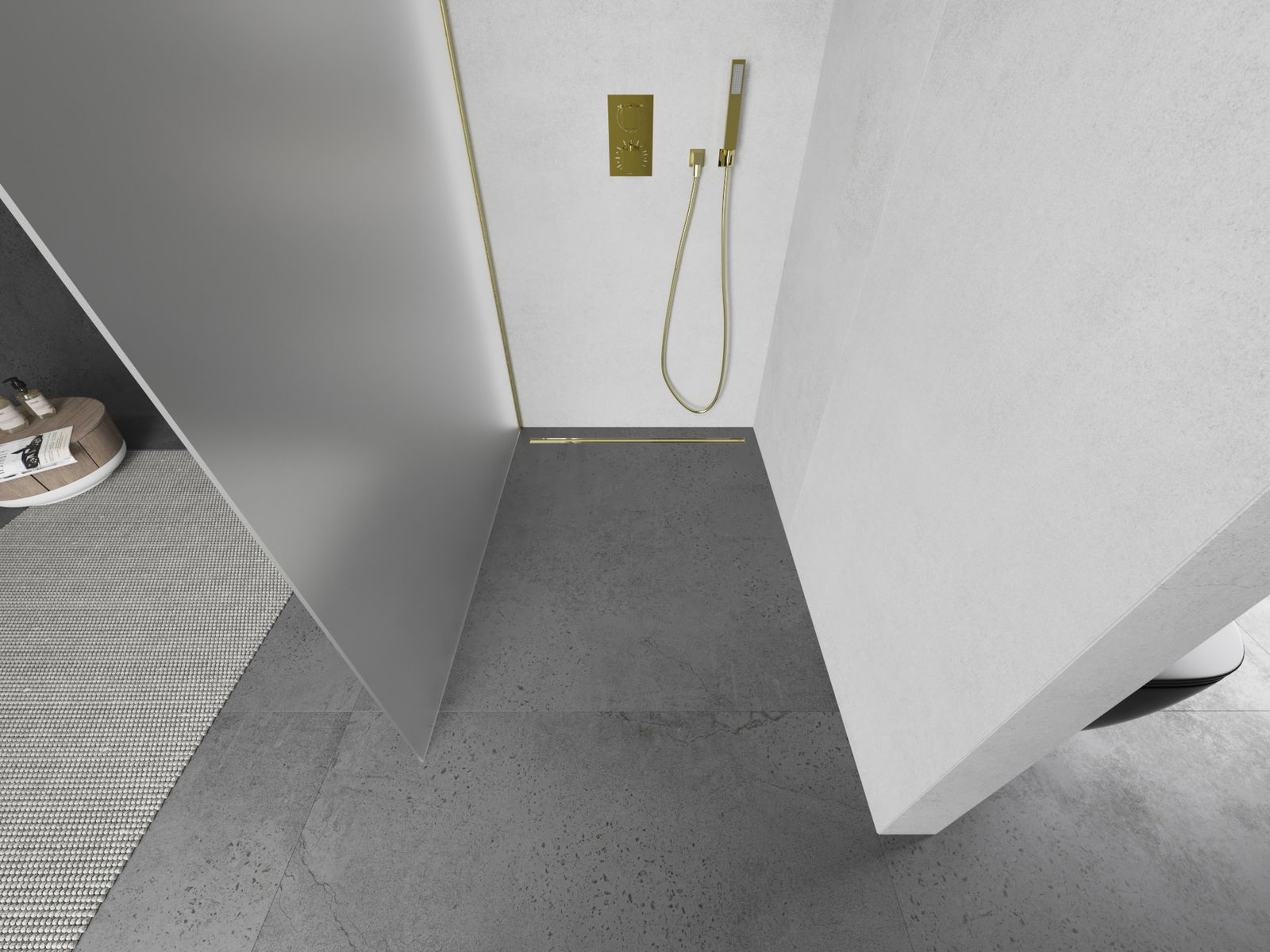 Mexen Kioto L стъклена преграда Walk-in 90 x 200 см, мразовито стъкло, златисто четкано - 800-090-103-55-30