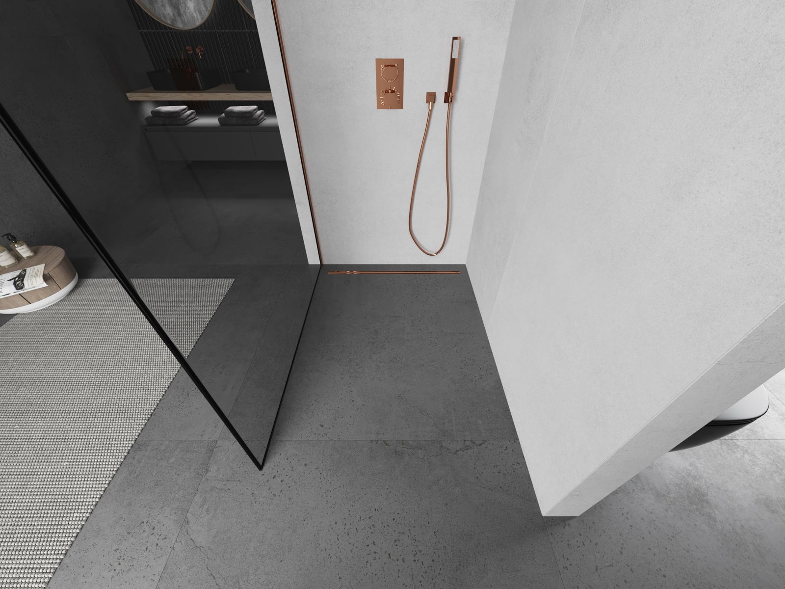Mexen Kioto L душ екран Walk-in 100 x 200 cm, черна рамка, розово злато - 800-100-103-60-70