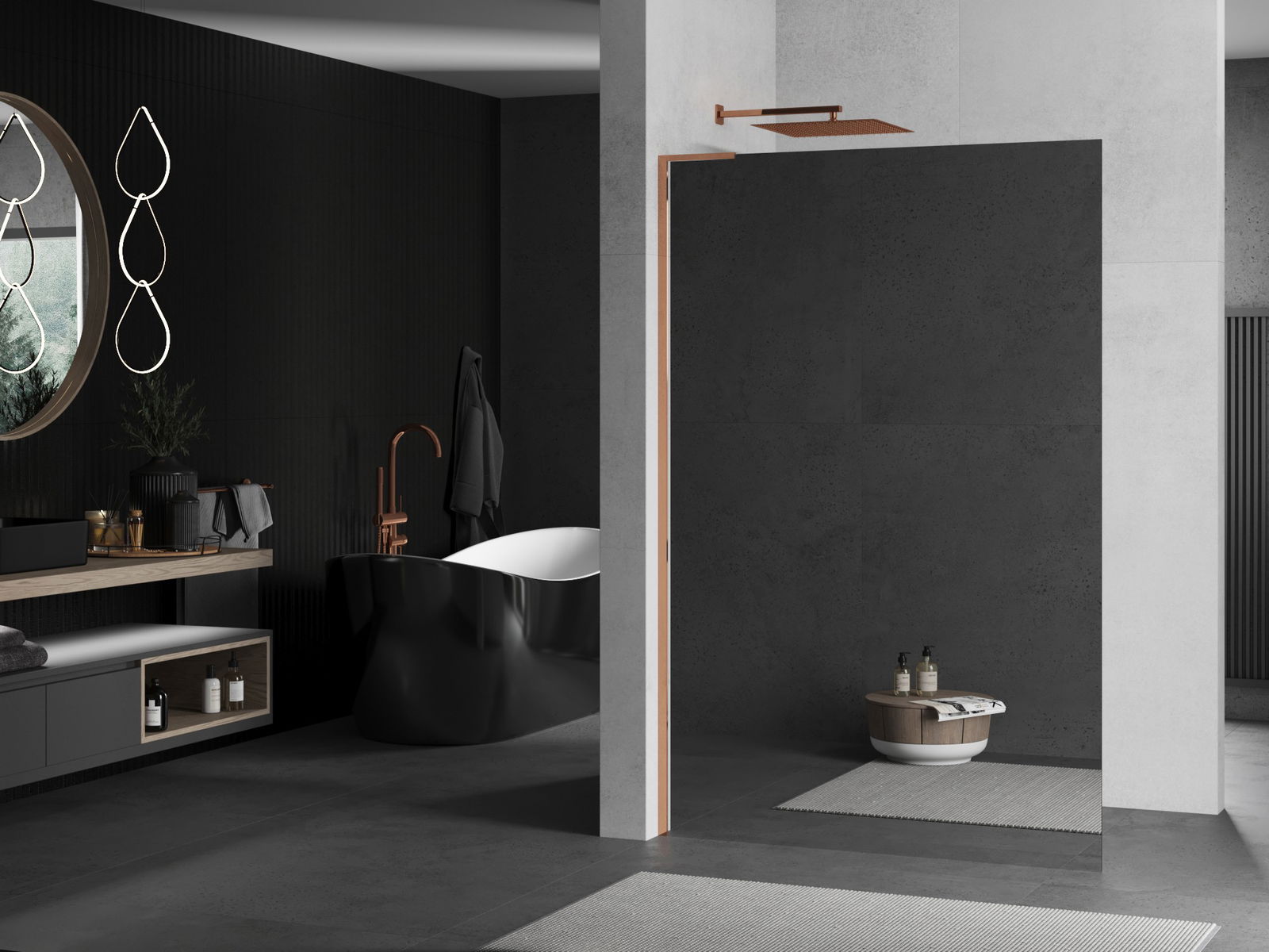 Mexen Kioto L страничка за душ Walk-in 120 x 200 cm, огледало, розово злато - 800-120-103-60-50