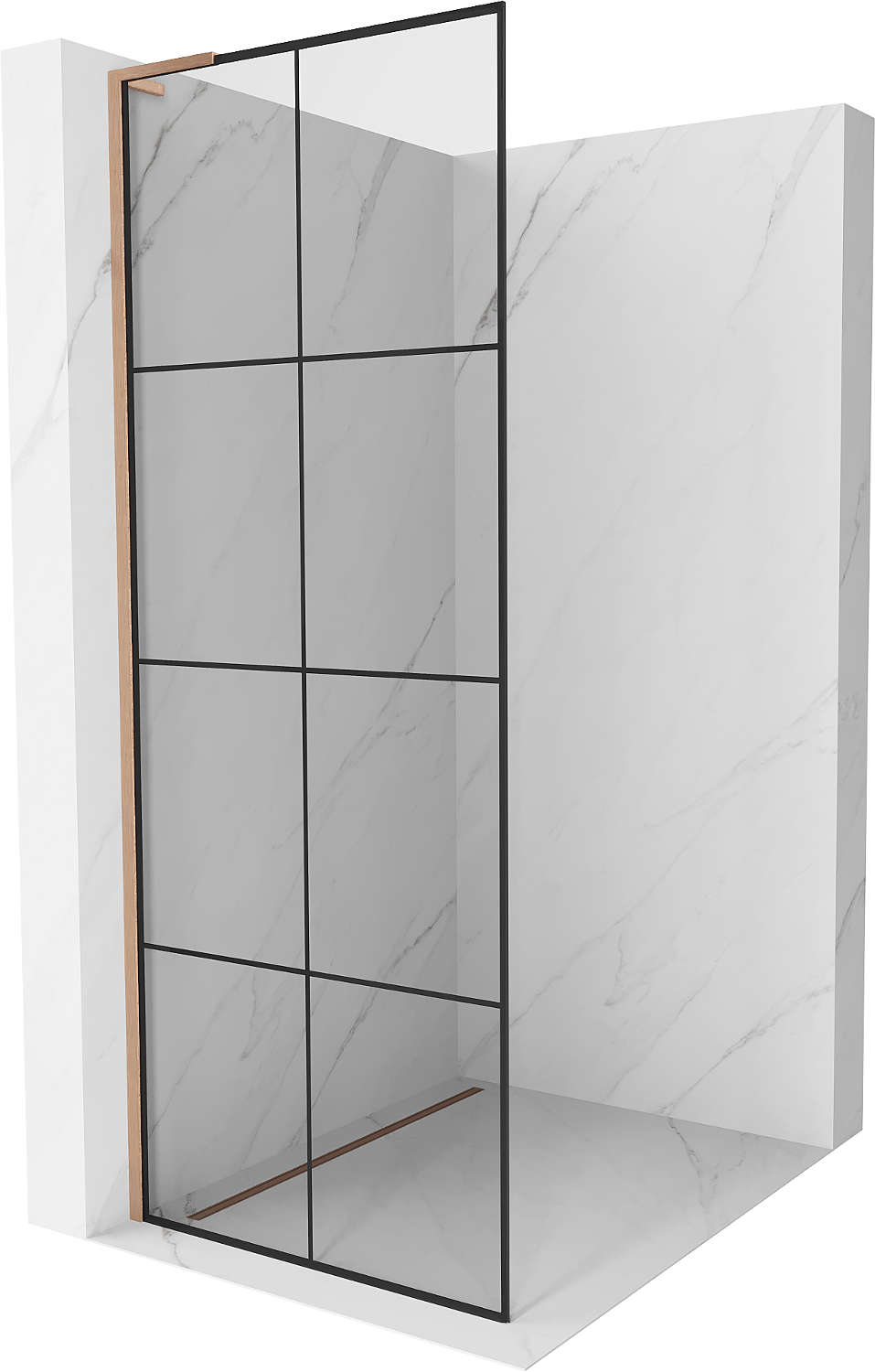 Mexen Kioto L душ панел Walk-in 70 x 200 см, черна решетка, четкана мед - 800-070-103-65-77