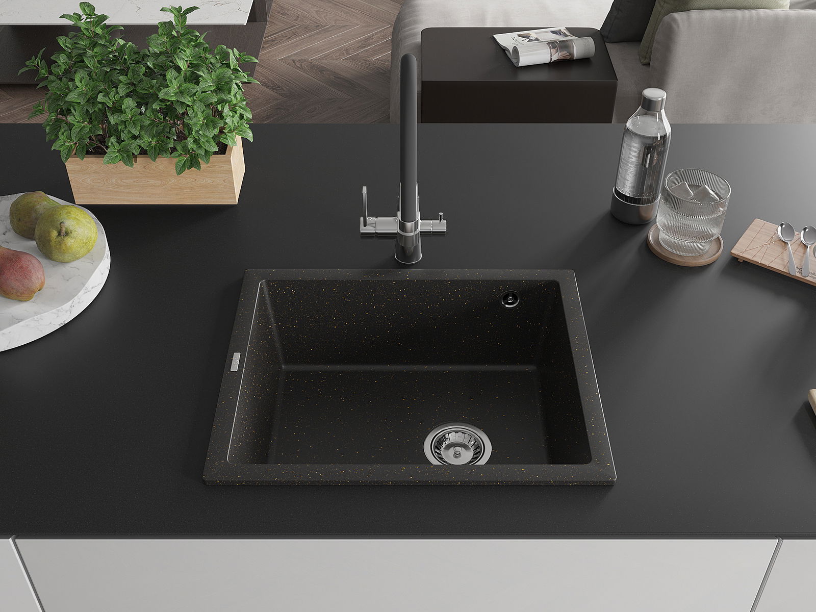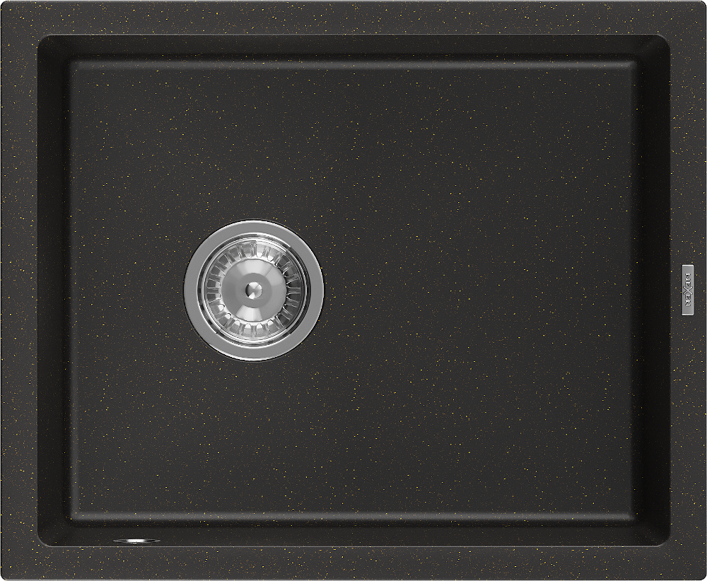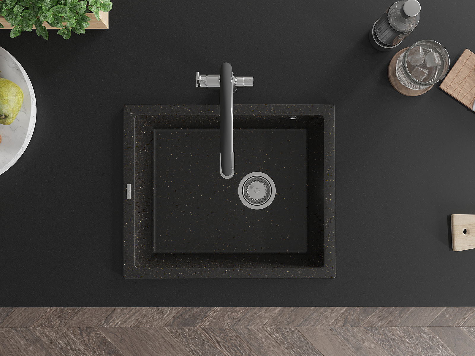 Mexen Pedro еднокамерен гранитен мивка 560 x 460 мм, черен/златист металик, хром сифони - 6508561000-75