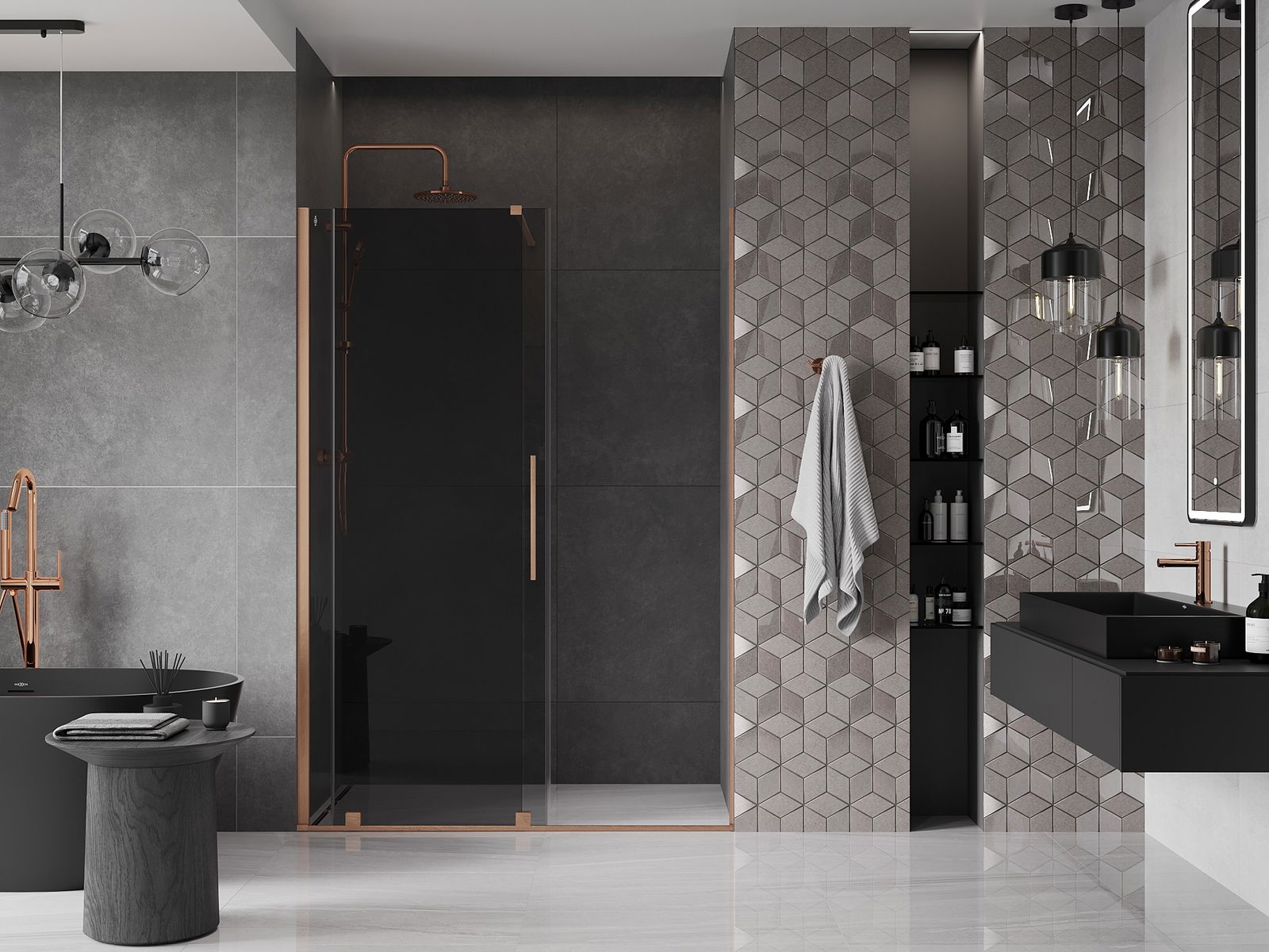 Mexen Velar плъзгащи се душ врати 140 см, графит, четкан мед - 871-140-000-41-65