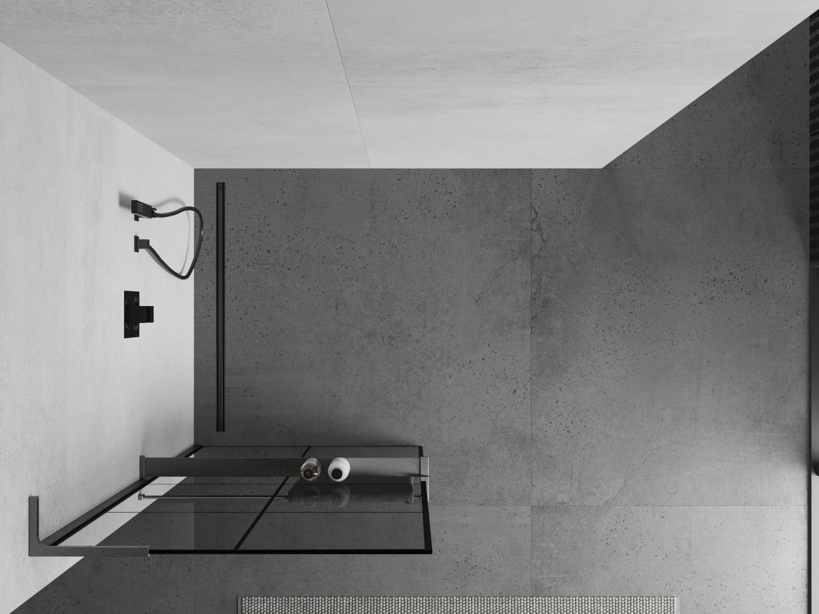 Mexen Kioto+ L душ кабина с рафт Walk-in 90 x 200 cm, черна решетка, gun gray четка - 800-090-123-66-77