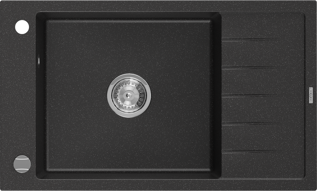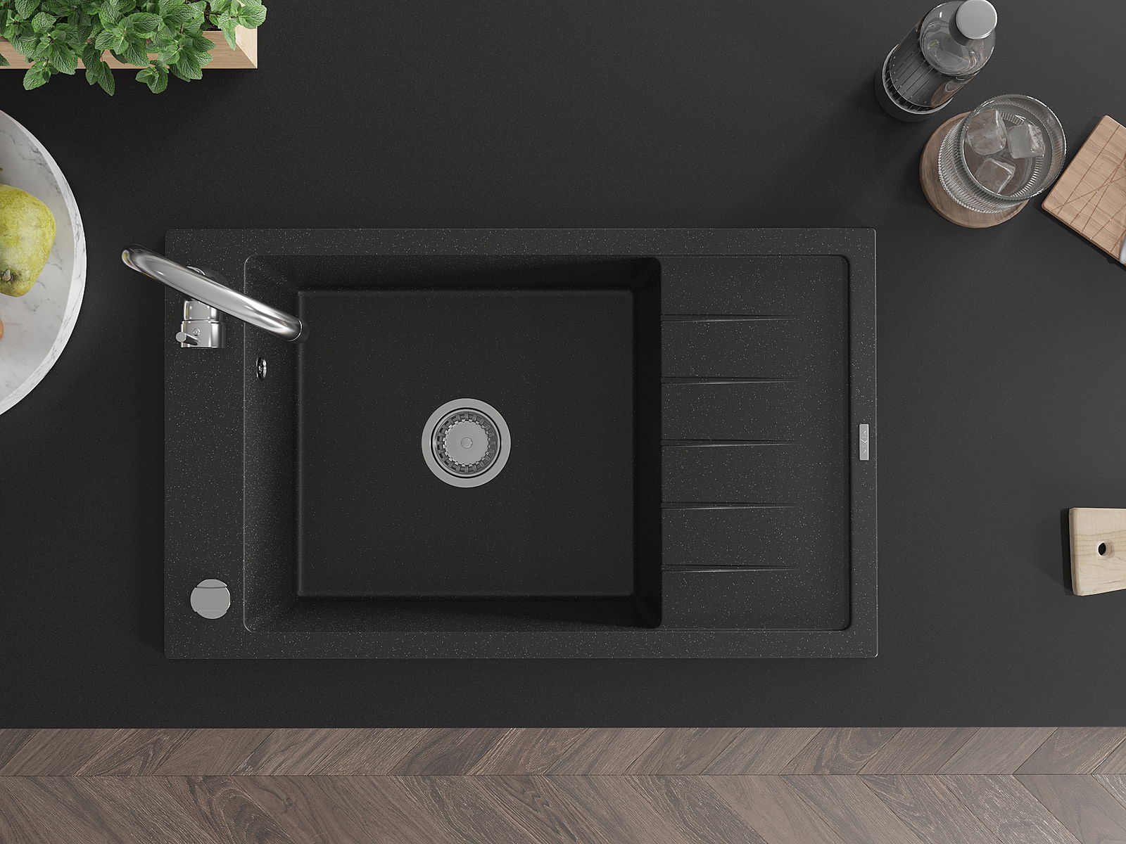 Mexen Elias мивка гранитна 1-камерна със сушилник 795 x 480 мм, черен/сребърен металик, сифон хром - 6511791005-73