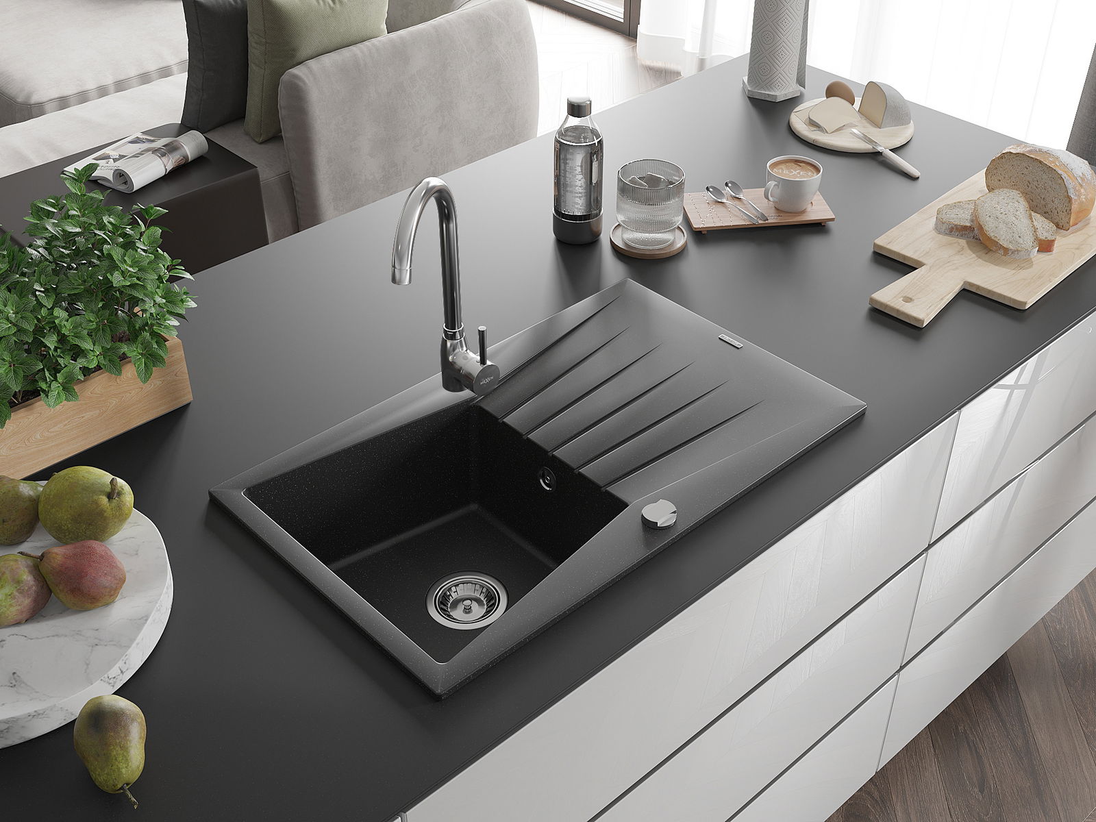 Мивката е направена от висококачествен гранит. Това е елегантно и най -вече практично допълнение към всяка кухня, независимо от нейния стил. Висококачествената и гранитна издръжливост осигуряват много години употреба.