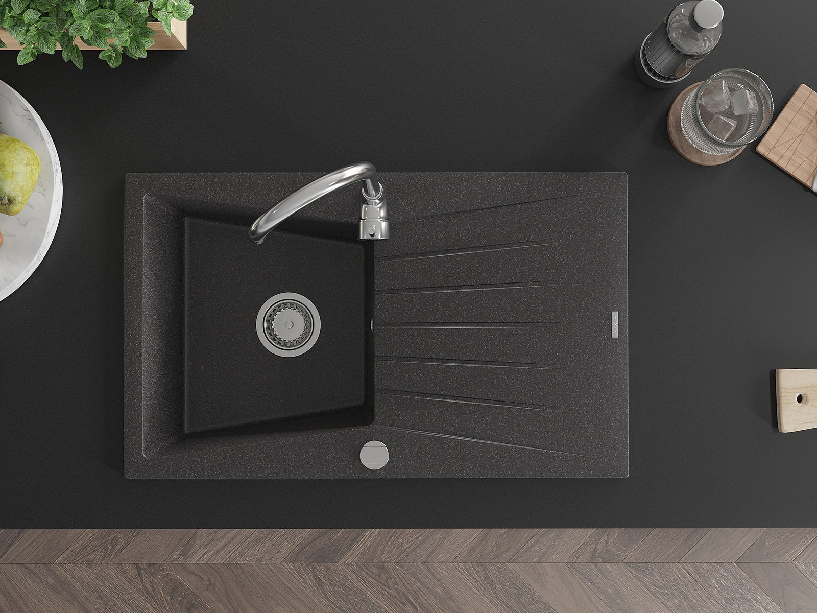Мивката е направена от висококачествен гранит. Това е елегантно и най -вече практично допълнение към всяка кухня, независимо от нейния стил. Висококачествената и гранитна издръжливост осигуряват много години употреба.