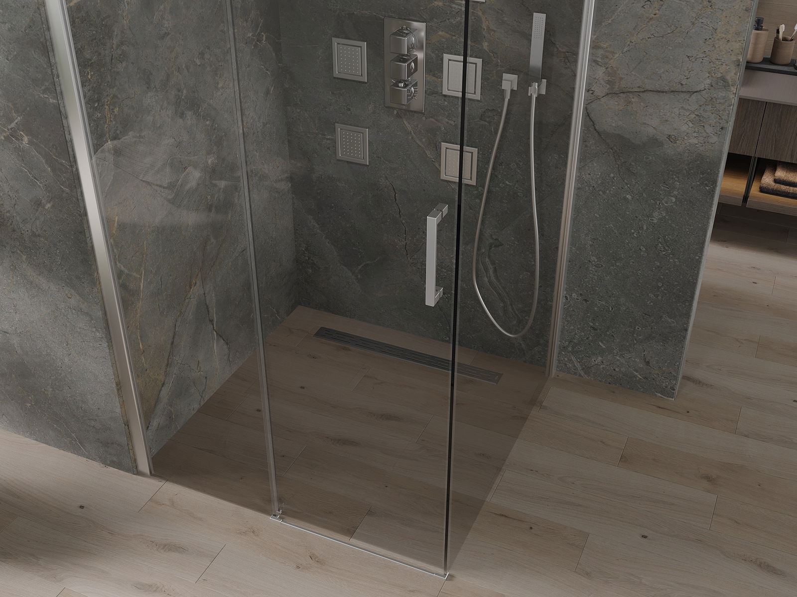В зависимост от вашите нужди, продуктът може да бъде монтиран както на таблата за душ, така и директно на пода. Универсалният метод за монтаж ви позволява да адаптирате продукта към различни видове бани и да конфигурирате място.