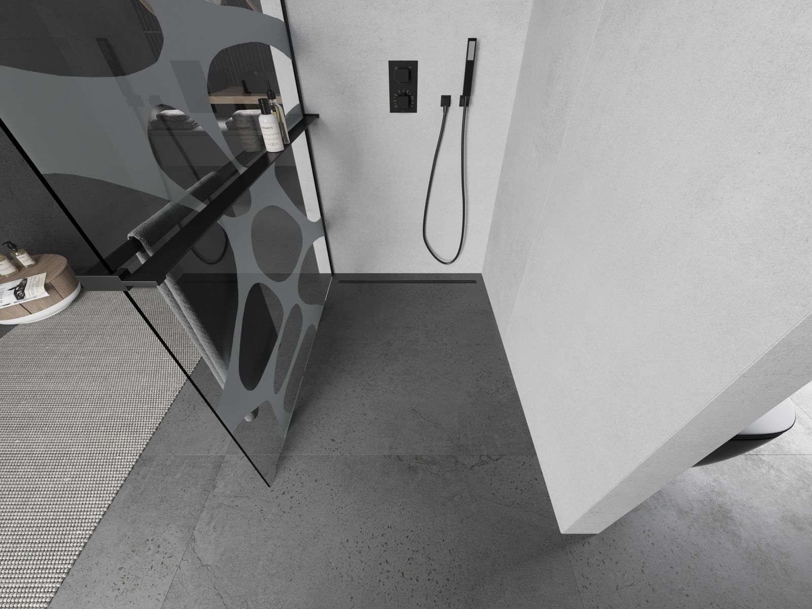 Mexen Kioto+ L душ преграда със стойка Walk-in 80 x 200 cm, бяла вълна, черна - 800-080-123-70-97