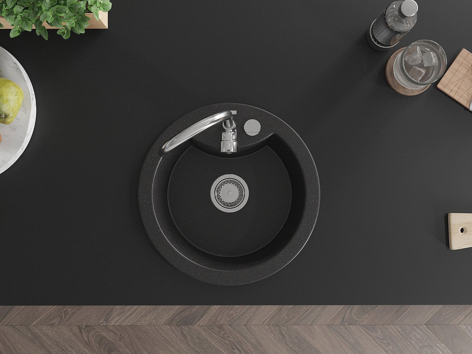 Mexen Diego гранитна мивка с 1 отделение 488 x 480 мм, черно/сребрист металик,
