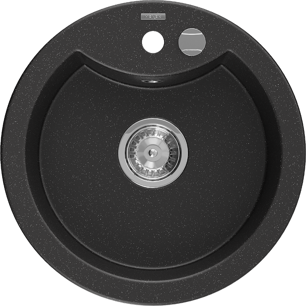 Мивка Mexen Diego от гранит с 1 отделение 488 x 480 мм, черен/сребърен металик, хромиран сифон - 6512481000-73