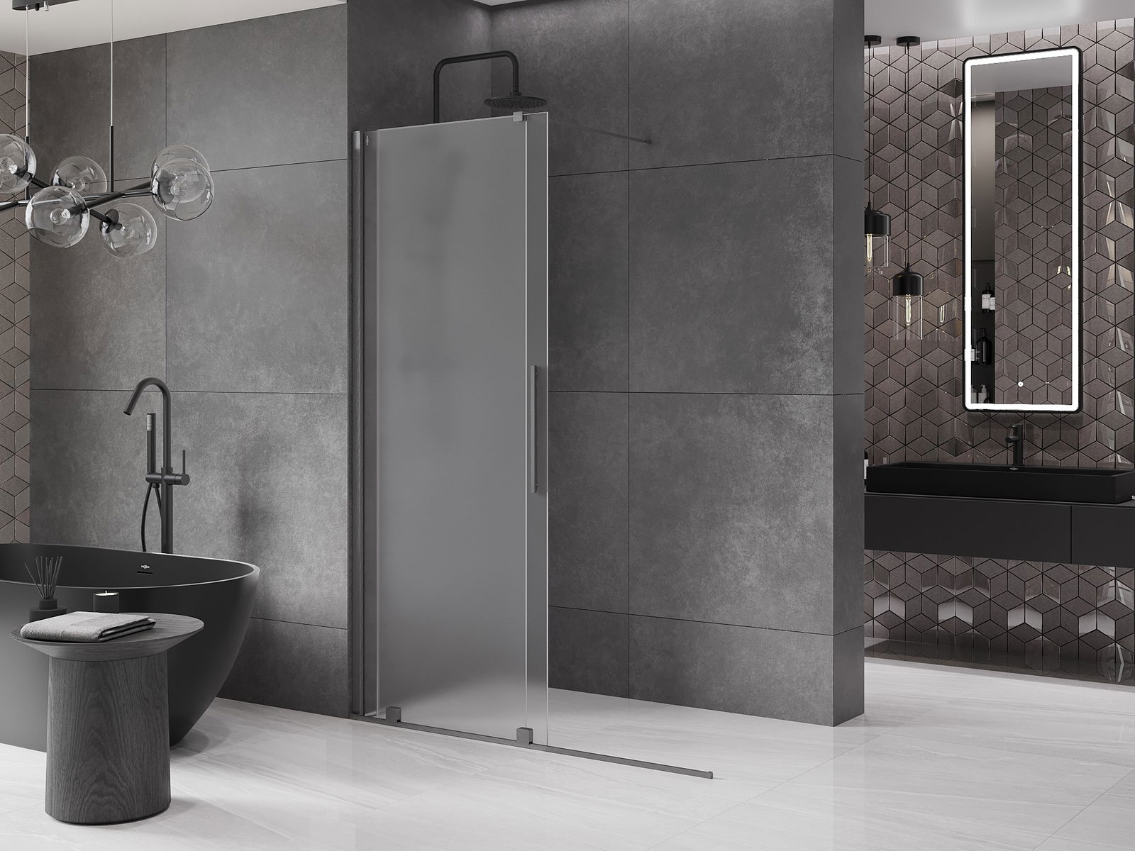 Mexen Velar плъзгаща се душ-преграда Walk-in 160 x 200 см, матирано 8 мм, четкано в оръжеен сив цвят - 871-160-000-33-66